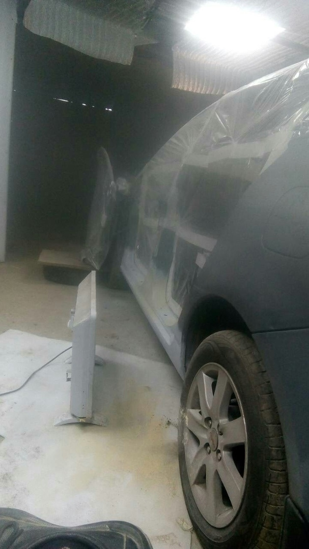 После всех сварочно-порожных работ наступили покрасочные в покрасочной мастерской "Муж-Гараж". Красил муж собственными руками, так как опыт покраски автомобилей уже есть, да и подфортило на работе — как раз в этот же период времени обустраивалась покрасочная камера (без нее никак).