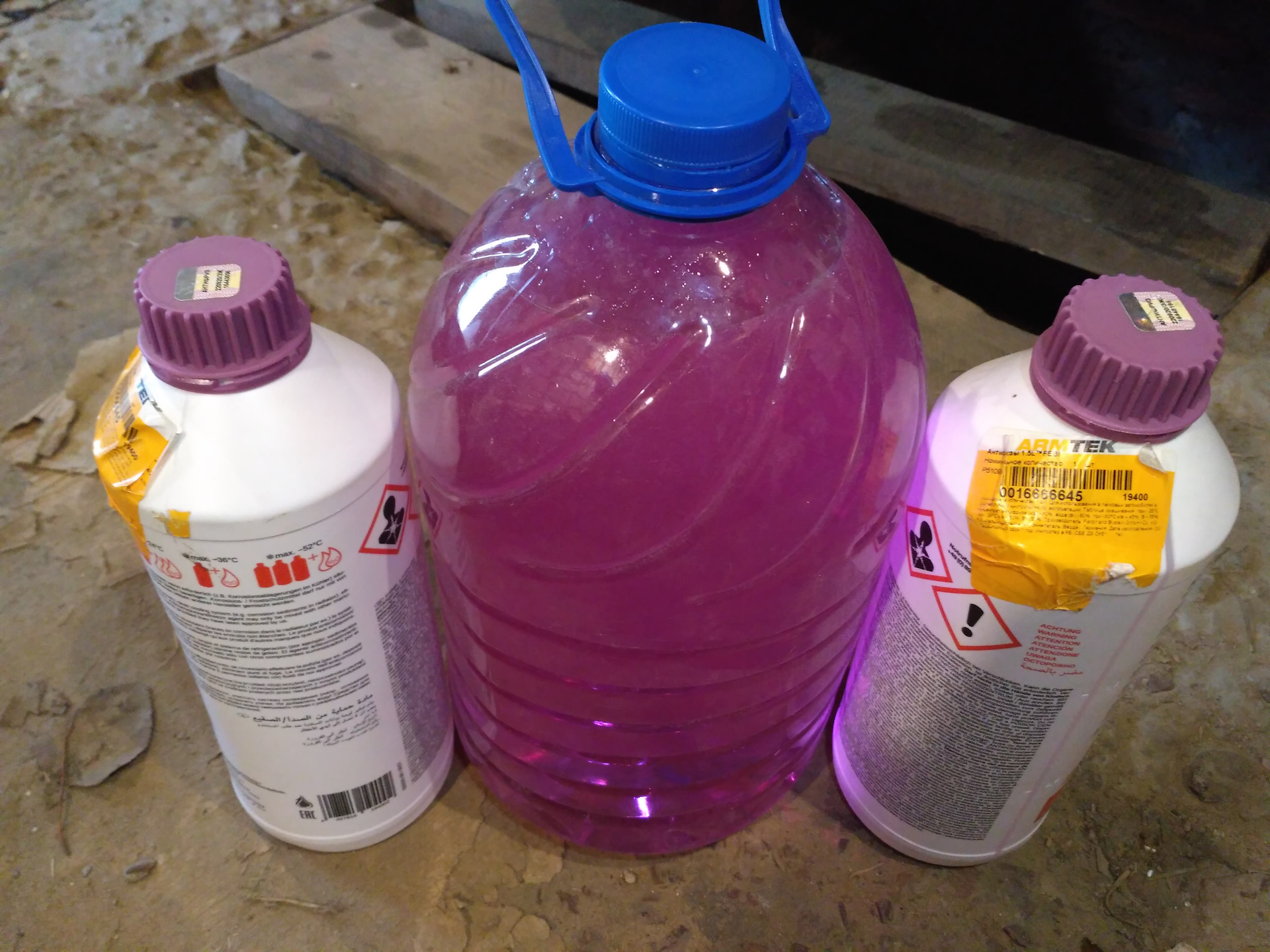 Установил новый бачок, замутил новый антифриз, залил. Вошло примерно 5,7 л.