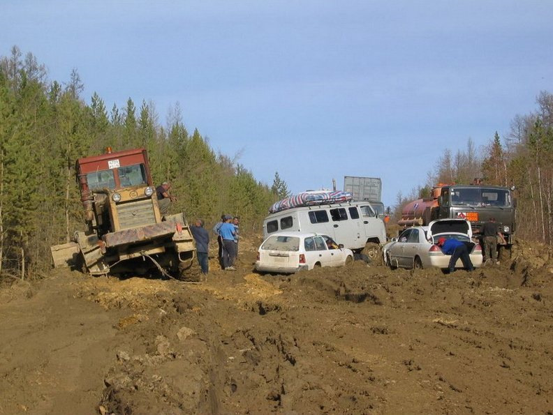 Но не надо забывать, что федеральная трасса в сторону Якутска, ещё какие-то пять-шесть лет назад выглядела вот таким образом