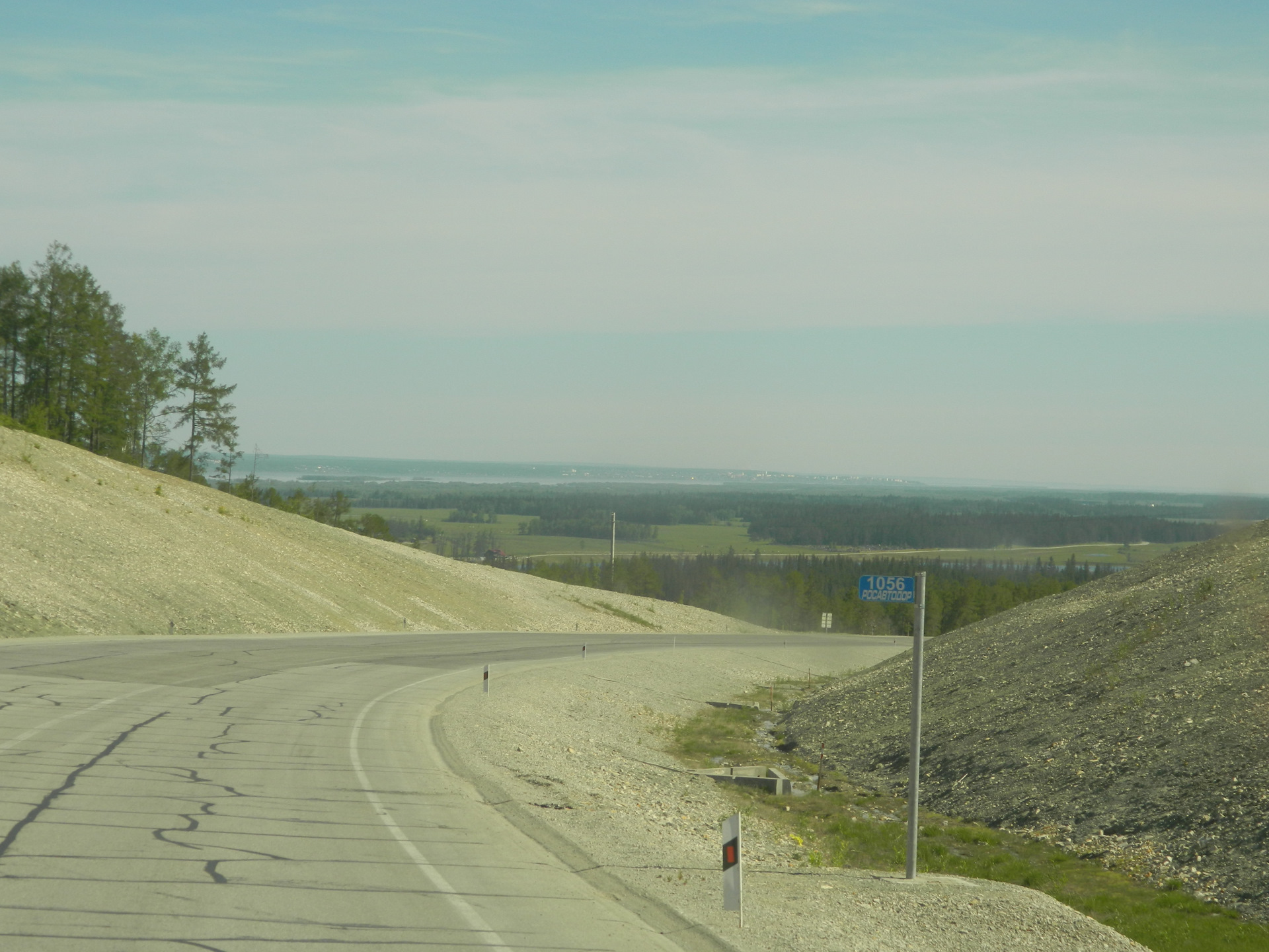 Во-он она виднеется на заднем фронте, а если обратить внимание на передний план снимка, то по километровому столбику можно определить, что осталось нам всего около ста километров пути.