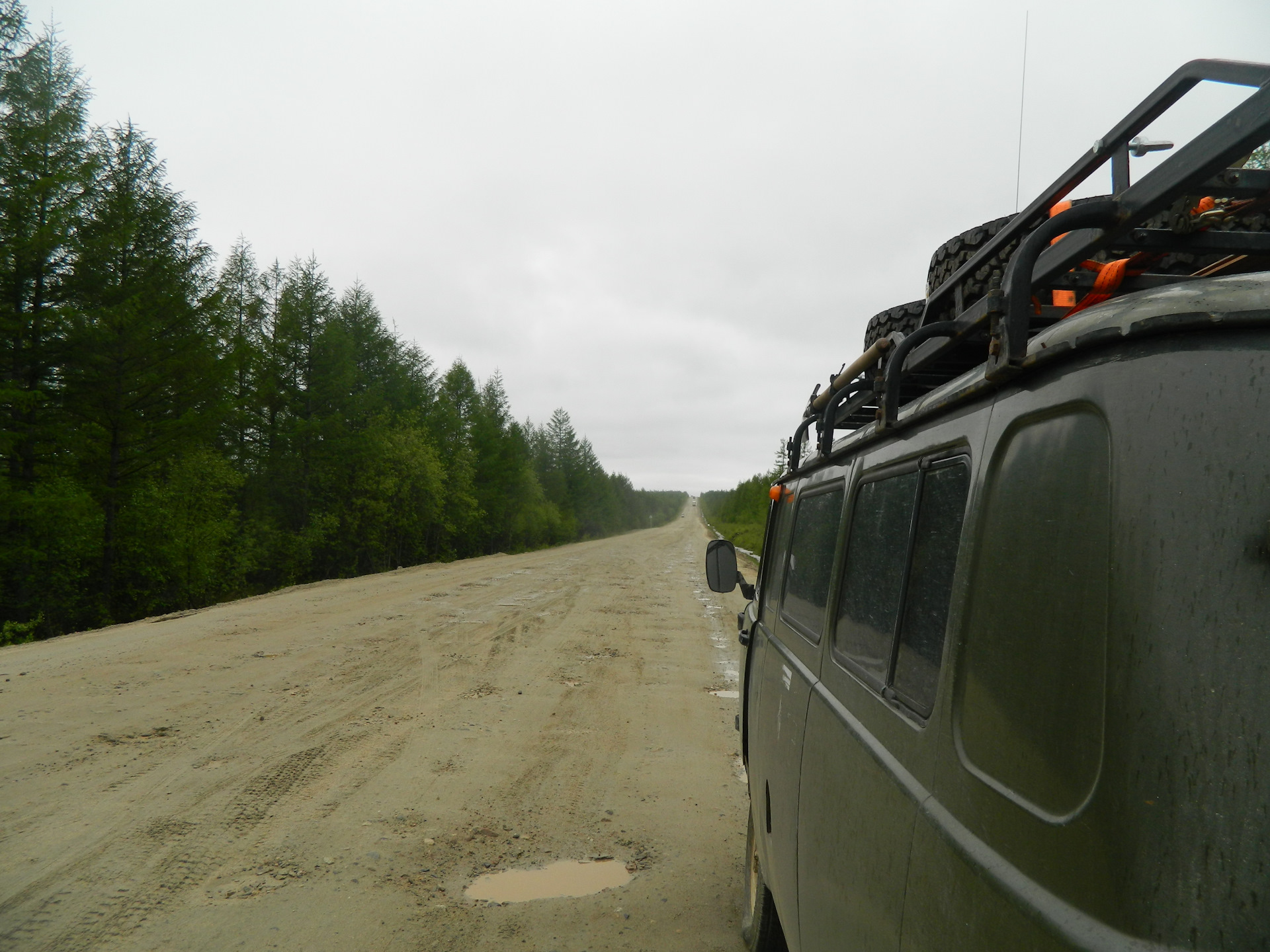 Внимательный читатель наверное заметил, что на крыше УАЗика, на багажнике ехал новый комплект колёс. Скаты эти не были предназначены для прохождения маршрута до Магадана, а ехали в город Якутск для друга моёго Сашки, у которого тоже имеется автомобиль УАЗ.