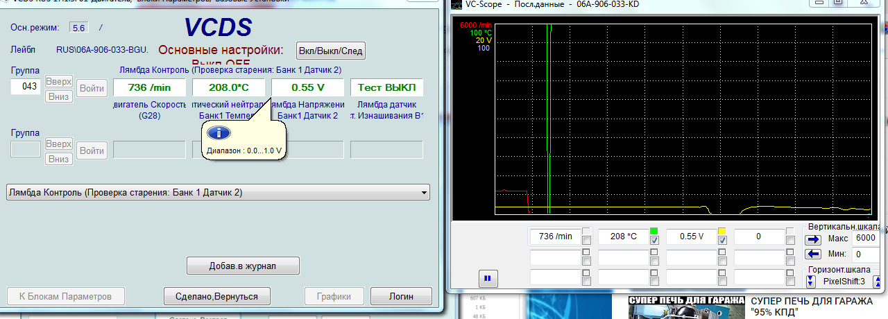 Сильно она меня не напрягала, раз в две — три недели ее сбрасывал и все. Но все-таки хочется, чтобы все было по фен-шую))) Решено заняться этой проблемой. Перечитано много информации про сами катализаторы и про кислородные датчик, что возможно накрылся один из них и тогда разница в показаниях тоже может выдавать ошибку об низкой эффективности катализатора. Проверил в начале программой Torcue показания кислородных датчиков — челюсть до пола, так как первого датчика как будто даже физически нет! Второй кислородный датчик работает как положено, напряжение у него не скакало и было выше 0,45 вольт, но ниже 0,7 вольт, что говорило в пользу убитого катализатора. Тогда подключился уже шнурком и собственно увидел туже картину — нет напряжения на первом кислородном датчика, даже номинального 0,45 вольт…