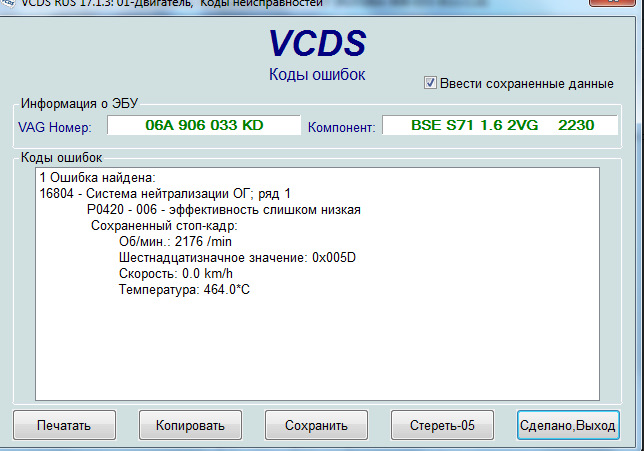 Проверяем на ошибки после проверки датчиков и катализатора (перед проверкой надо заранее ошибки все стереть) и получаем на выходе ту самую ошибку: