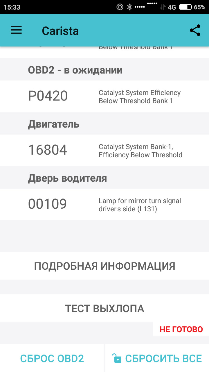 Получается ошибка "неэффективность катализатора" может быть именно из-за его неэффективности или из-за неисправности по второй лямбде. И ошибки эти парой выскакивают часто.