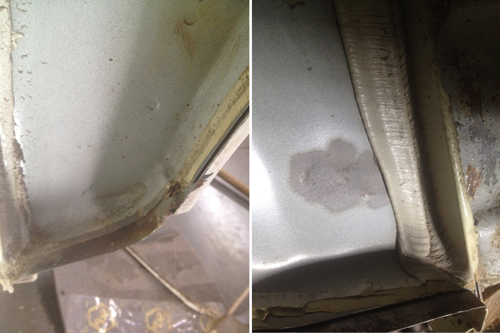 если бы ты ее не мыл часто, было бы все гораздо печальнее — влага задерживается в слое грязи и под этой толщей защиты от высыхания идет процесс окисления металла. Такая ж лабуда со стаканами передними и задними, порогами, ну и арками под герметиком — влага там практически всегда. я в сл году днище решил еще загерметизировать от влаги, со снятием бака, выхлопа и прочей мишуры. Еще буду красить жопские рычаги и подрамник — начали как и у тебя ржаветь.