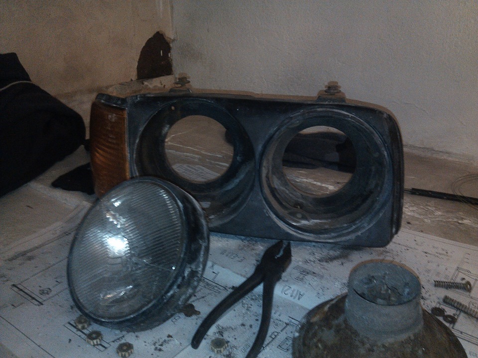 Конечно они уже были в плачевном состоянии, стекла правой фары были биты и все отражатели на левой и правой фарах гнили в потроха.
