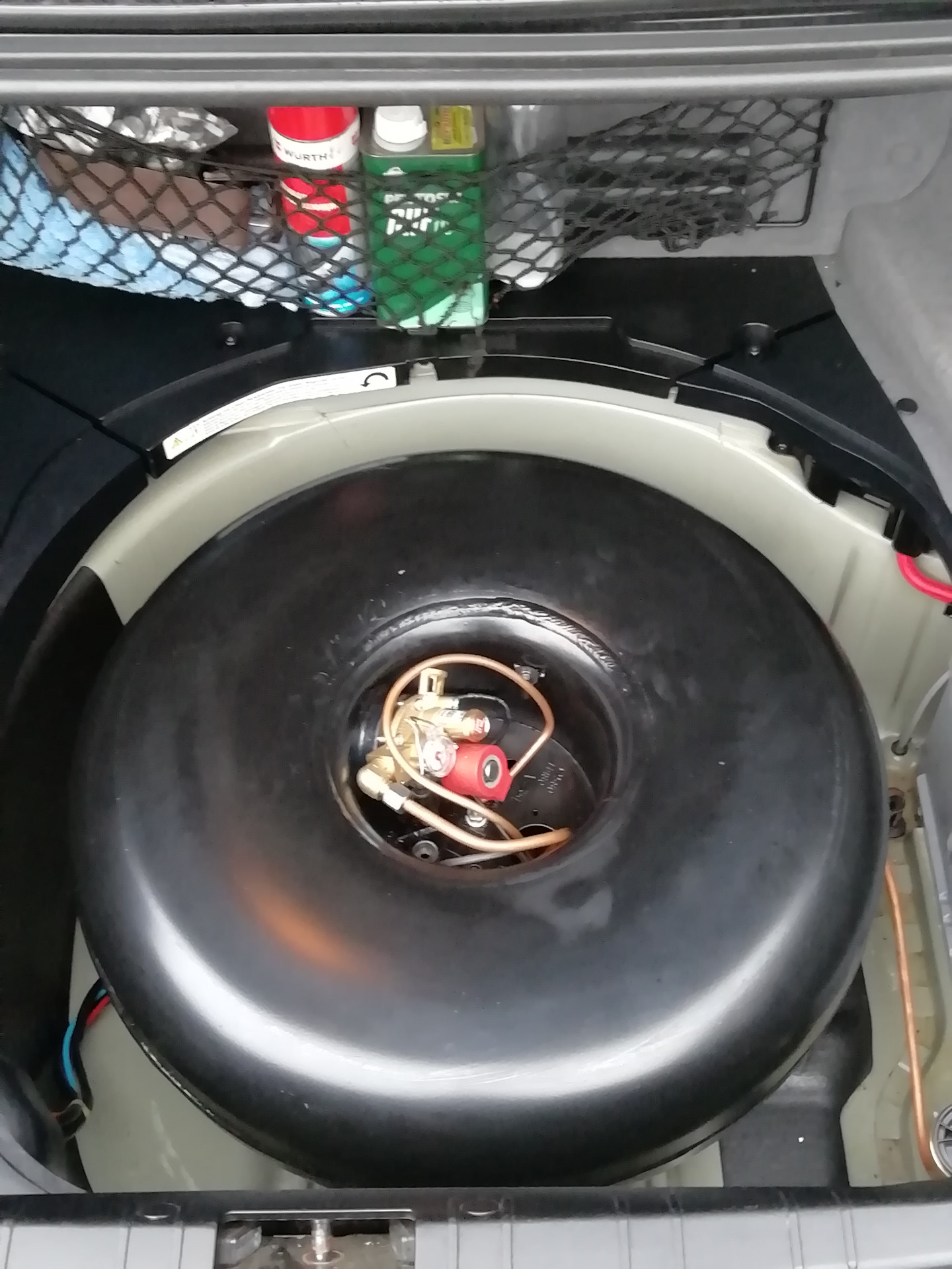Конструкцию рушить не хотел и пока принял решение — балон тороидальный в запаску на компрессор, но 35 литров. Да очень мало, да на заправку раз в два дня, но куда компрессор деть? В левой нише — всё забито, в правой так же, кто то переносит к аккумулятору, но у меня 105 и там пролезет только пальчик. Оставался вариант прикрутить его вверх ногами к верхней полке, на данный момент нет. Может кто знает, подскажет, чтобы только не было слышно в салоне и без вибрации? Заправочное, хотел под лючёк бензобака, отговорили — во первых сверлить, во вторых постоянно крутить переходники, тыкать заправочное по кузову (только хозяин любит свой авто, остальным на него насрать), в бампер, кузов однозначно нет, поставили рядом с баллоном в нише, сделаю новый пол багажника, заправочное будет под "ковриком". С этим как бы всё.