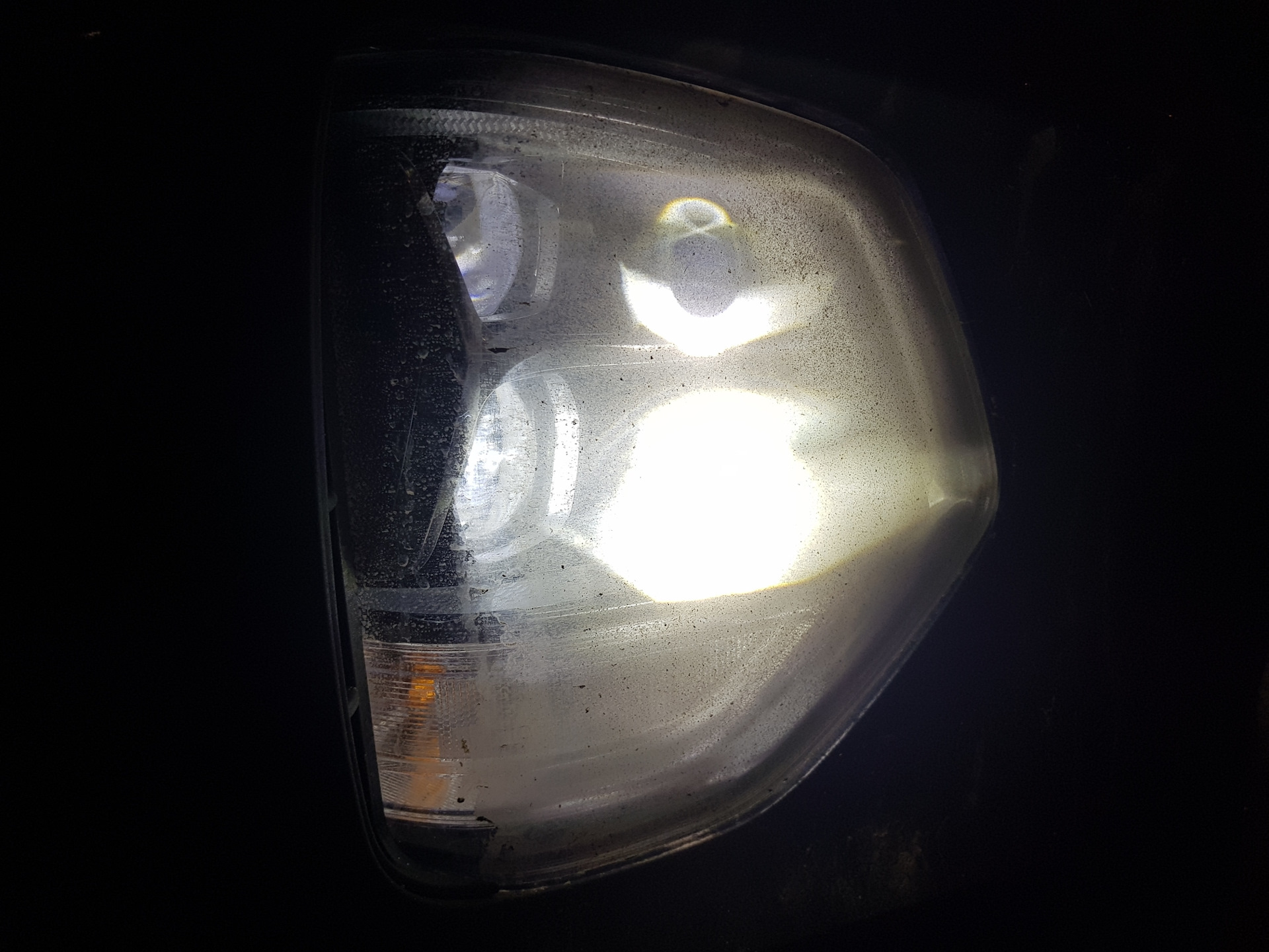 За то грязное стекло помогло мне определить регулируемую часть фары, как оказалось это верхний свет(Он же дальний). На фото видно, как в паре с ближним горит ещё и часть дальнего.