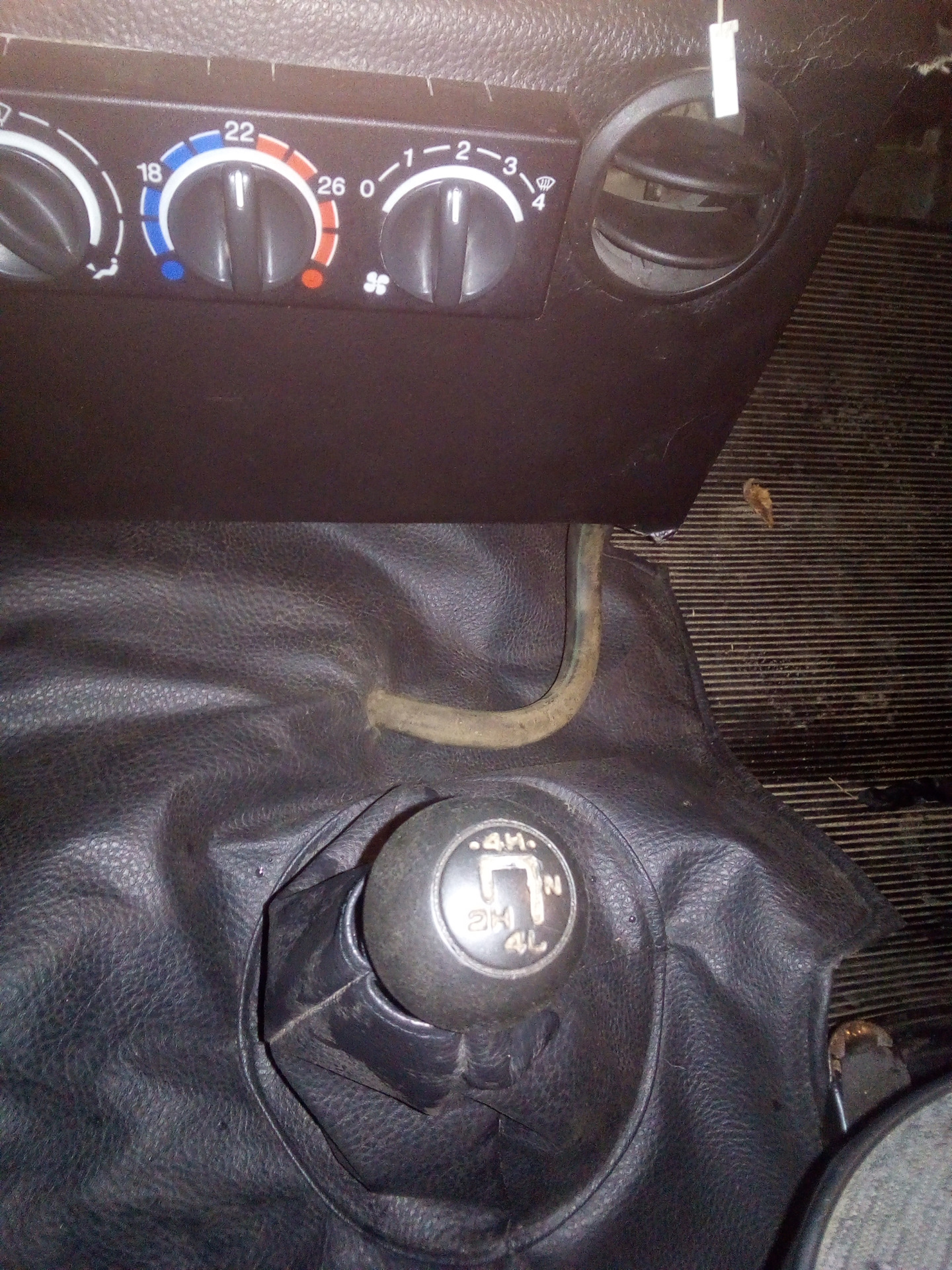 Устанавливая пыльник раздатки, заодно по-нормальному вывел и дренаж отопителя. А набалдашник рычага, мало того что идеально встал в кожзамовский кожух, так ещё и в руке сидит как влитой, куда удобнее того, что было раньше.