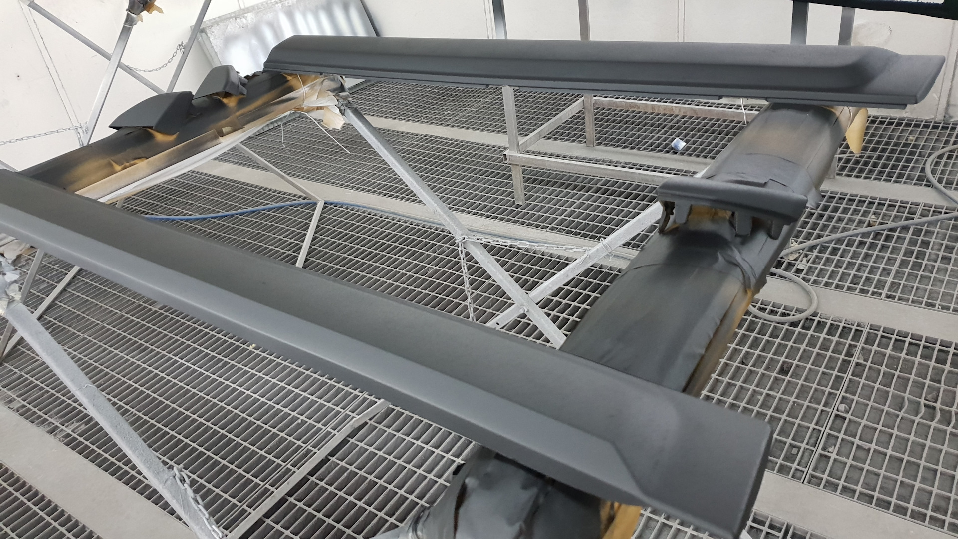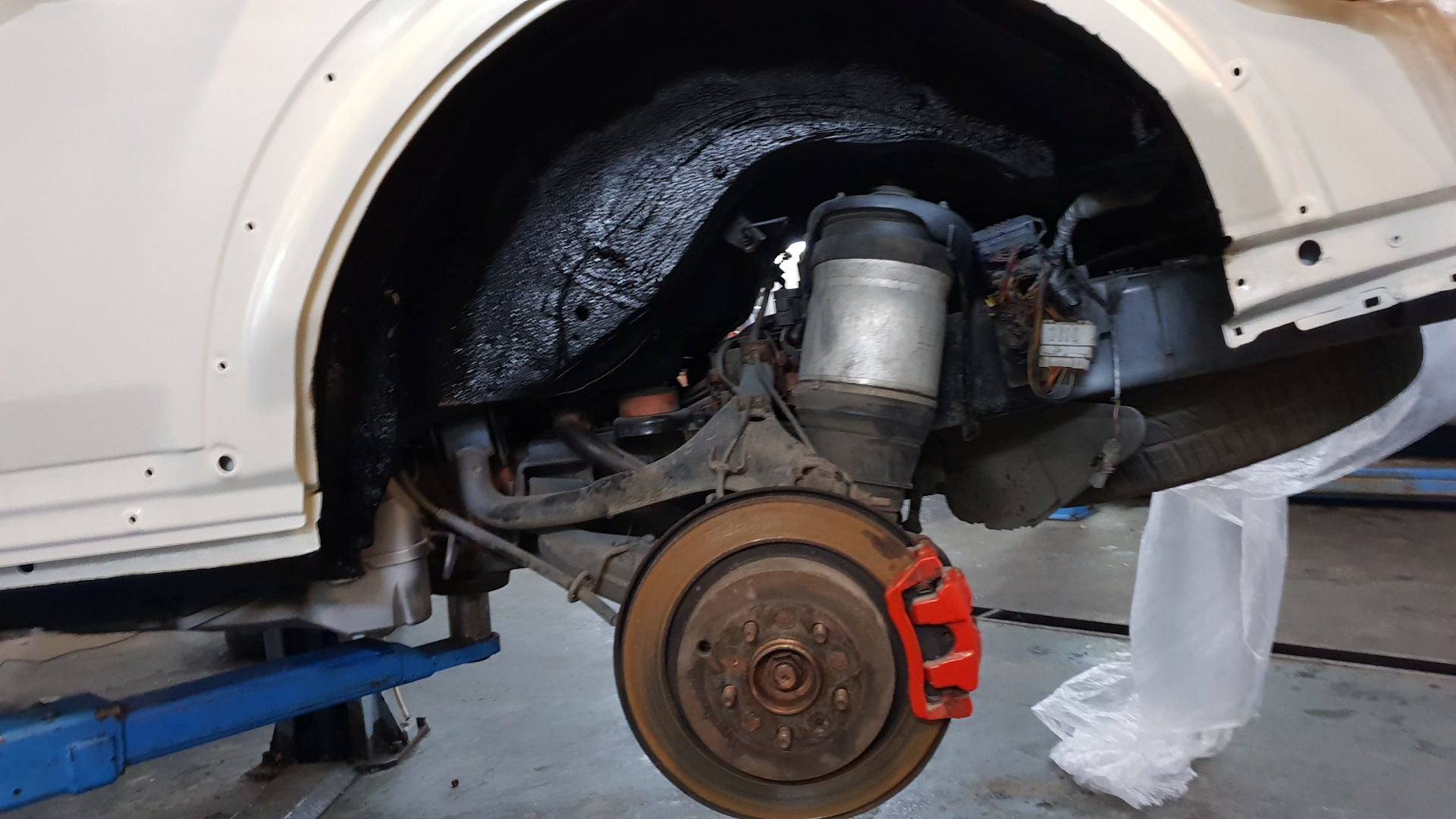 Автомобиль тем временем катается по просторам (upd 16-12-2020 туда ездить не советую, вопросы в личку) своим ходом и перебрался из малярного цеха в слесарный, пришлось поставить задние колеса r18, ибо пока пневма висит в ошибке и она не поднимается пока и мои колеса цепляют за арки. Воздух из пневмы спущен чуть более, чем полностью.