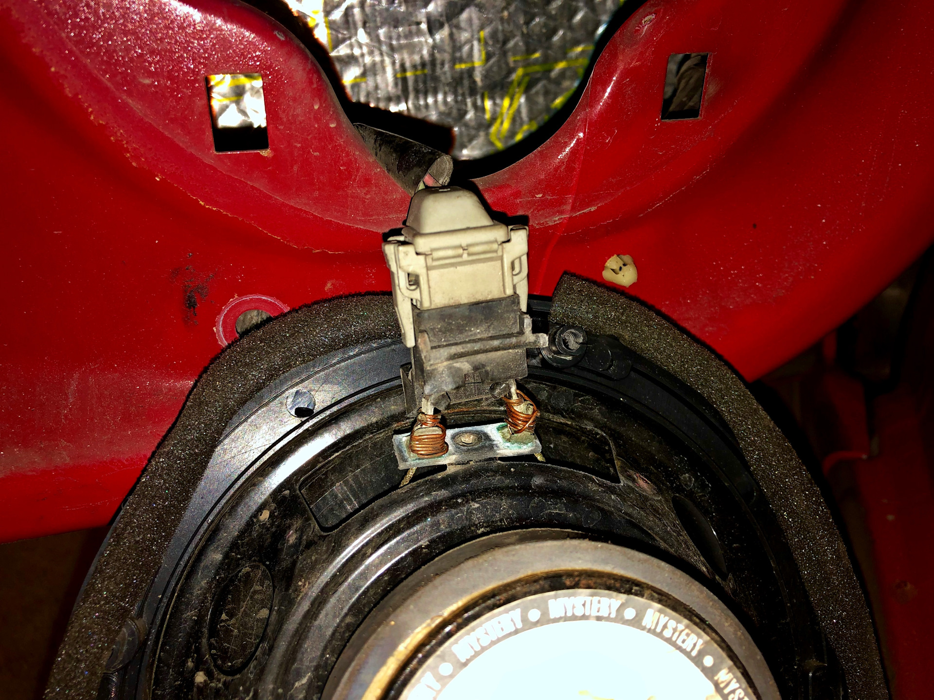 Работы по замене "сухарей" ограничителей заняли самое продолжительное время, ведь пришлось разобрать обшивку всех дверей. Зато я обклеил противошумкой пищалки в передних дверях, которые ужасно болтались. И узнал, как нужно запитывать колонки, учитесь, господа!