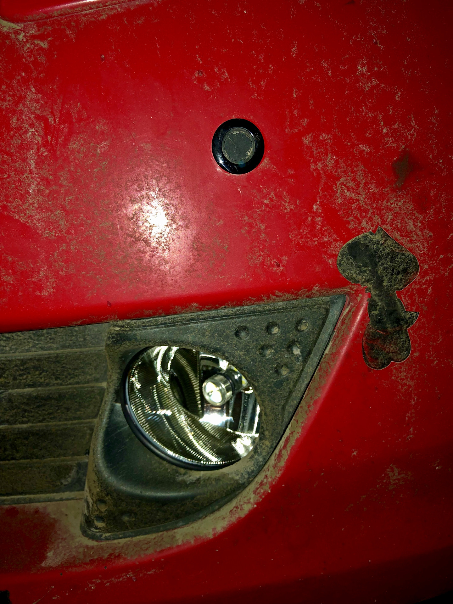 Купленные в прошлый раз ПТФ были покрыты бронеплёнкой и поставлены на место старых. Так же нашёл своё место новый кронштейн переднего парктроника взамен треснувшего. Кронштейн был любезно предоставлен предыдущим владельцем, за что ему спасибо.