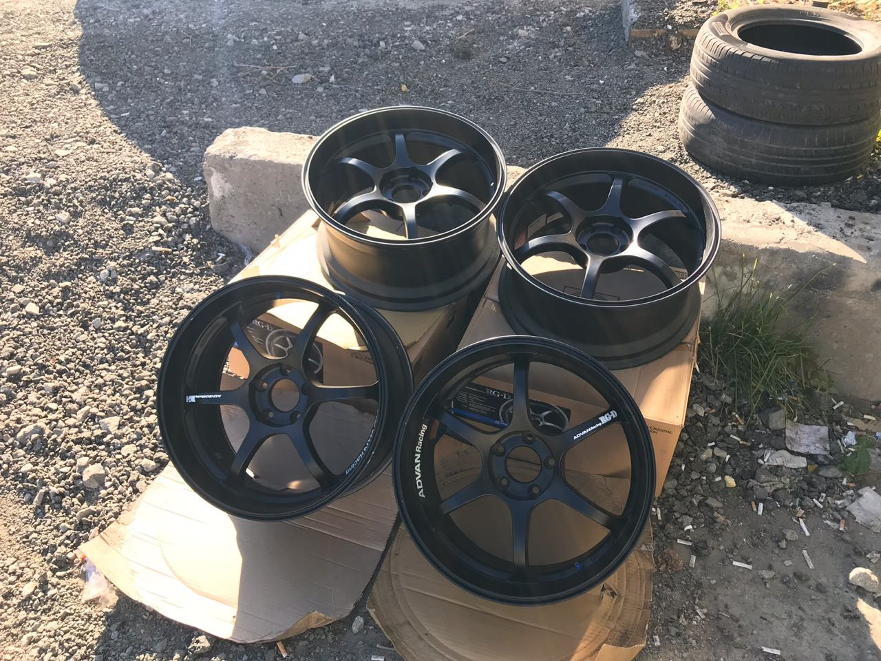 А все потому, что Мишаня Tygarin сделал царское предложение на оригинальные кованые Адваны RG-D в жирных параметрах… итак диски ADVAN RG-D 19х9 ет 25, оооооочень легкие единственный минус — диски матовые… перекрашивать новые адваны не хотелось, тем более все надписи выдавлены и сделаны алюминевого цвета.