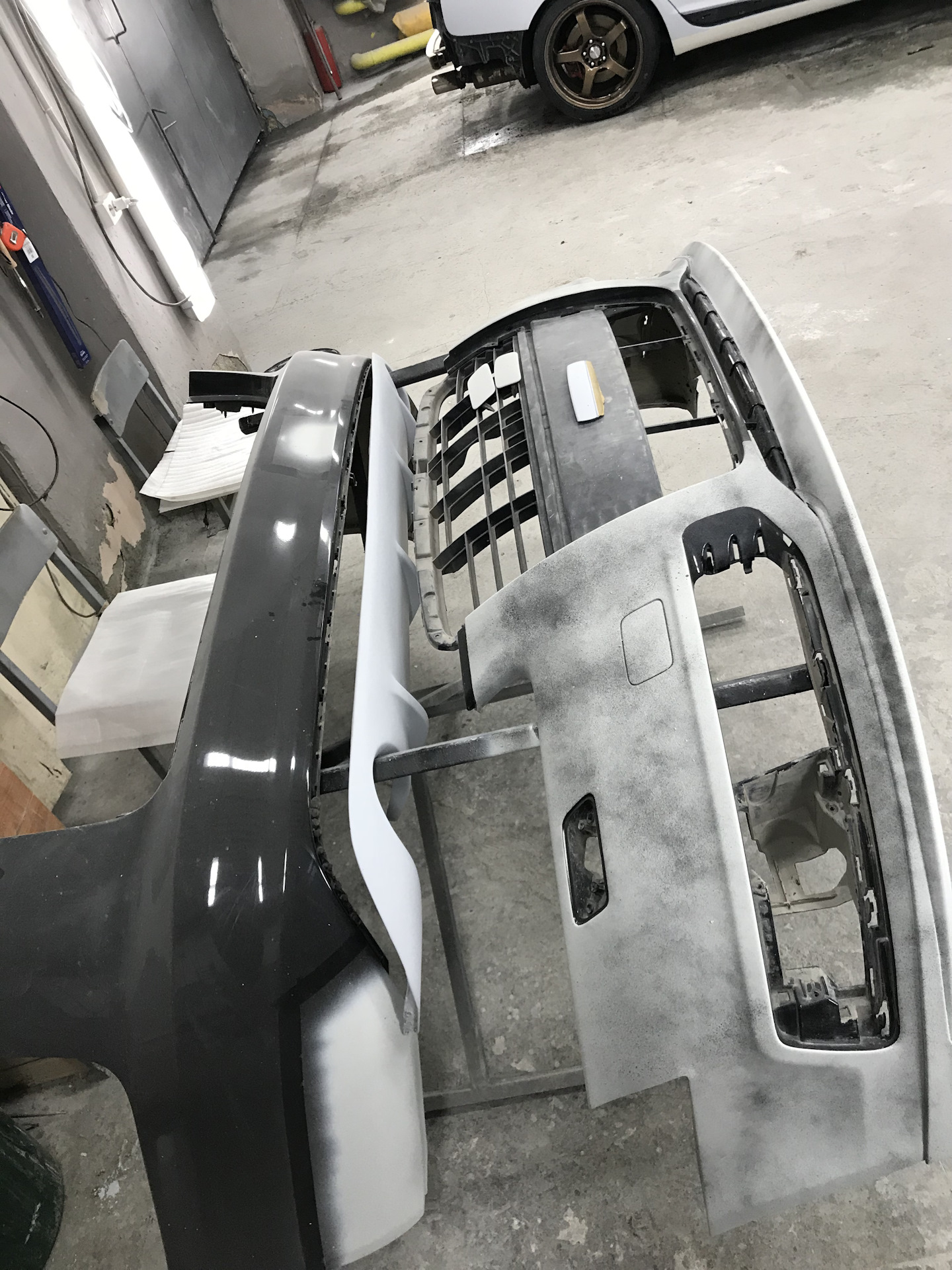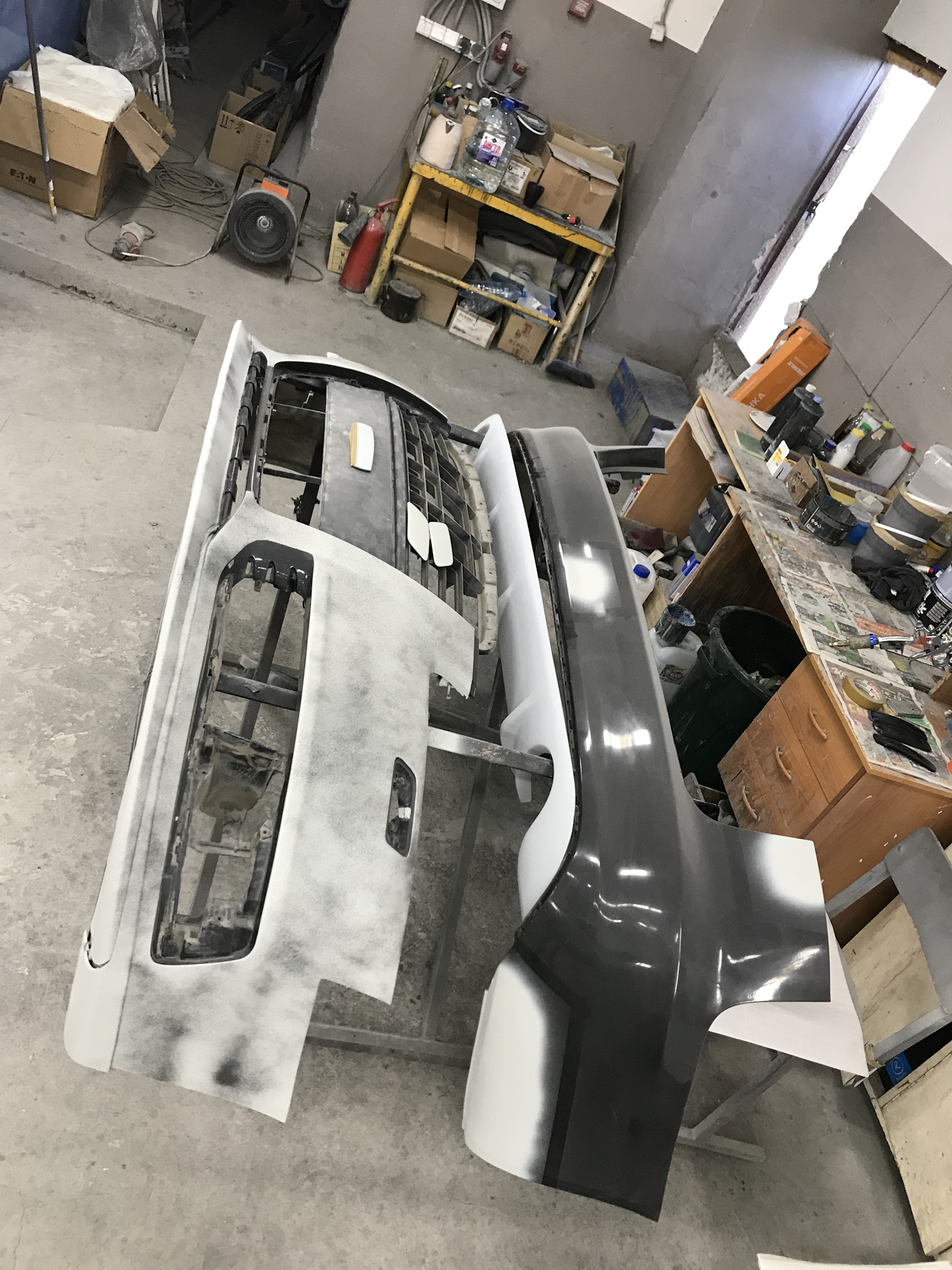 Мелкие детали — зеркала, спойлер, губа, дифузор, решеточки туманок были выкрашены в черный глянец.