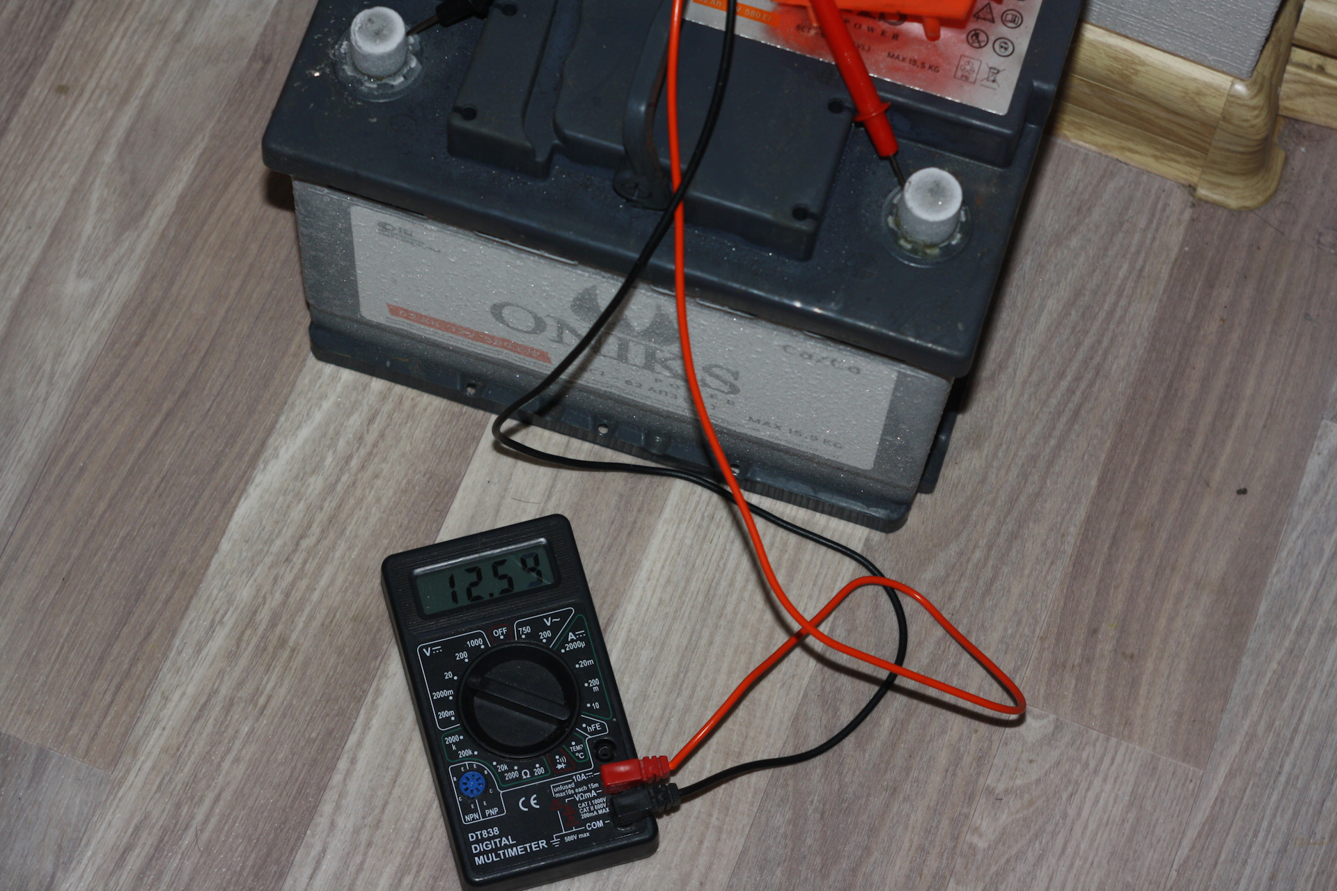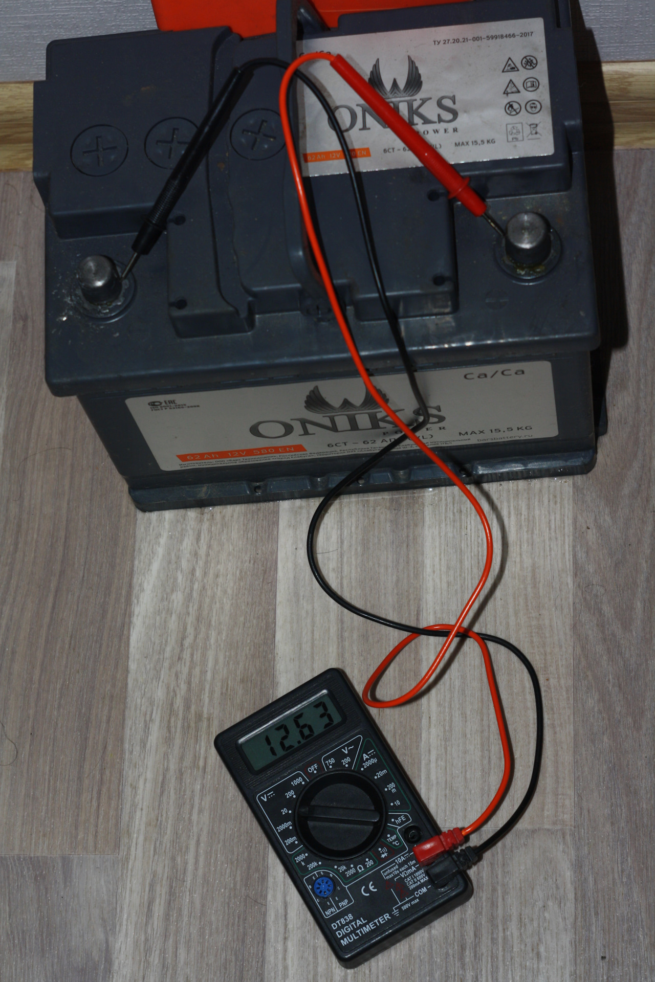 Дал поработать двигателю 10 минут, снял АКБ и унес домой. Замер напряжения на замерзшем 12.54 вольт, дал ночь постоять, оттаять, замер на утро показал 12.63 вольт.