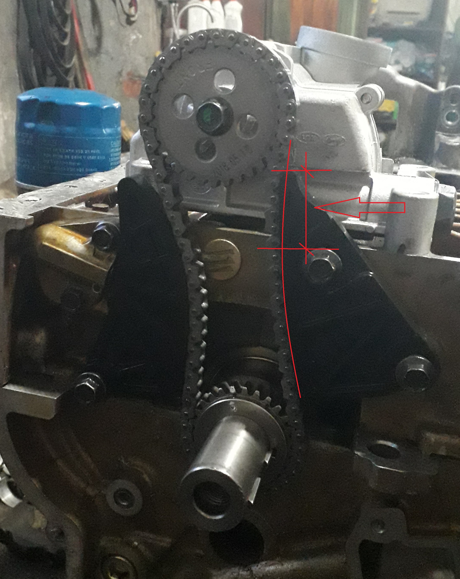 Вся проблема в том, что у тебя пиндосовский мотор ED3 установлен, судя по фото насоса и полуподдона.У G4KE и американца разные моменты затяжек, поэтому в сервисе все резьбы корней и вытянули.И болты насоса тоже не подошли по той же причине.У корейца болты полуподдона М9, а у америкоса М8.Ксати, натяжитель и успокоитель цепи насоса надо было ставить от G4KD, тогда и подпиливать ничего не надо