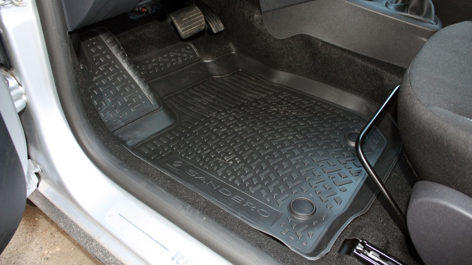 Достались от прежнего собственника такие резиновые коврики салона и багажника.