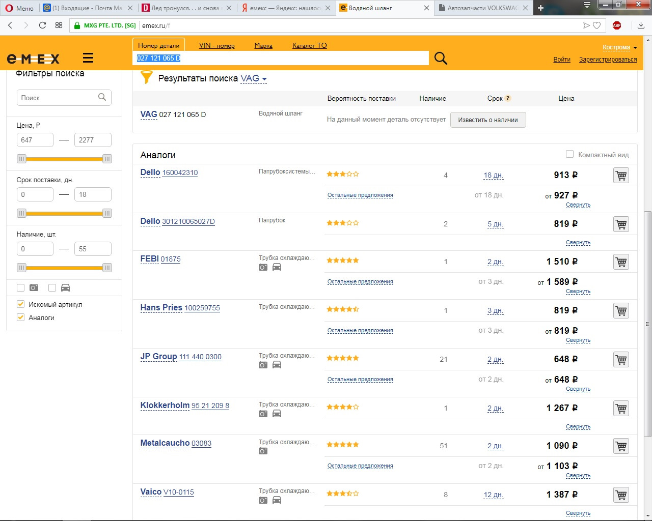 Я под заказ брал, аналог febi. Оригинальный номер для PF VAG 027 121 065 D. Аналоги на скрине