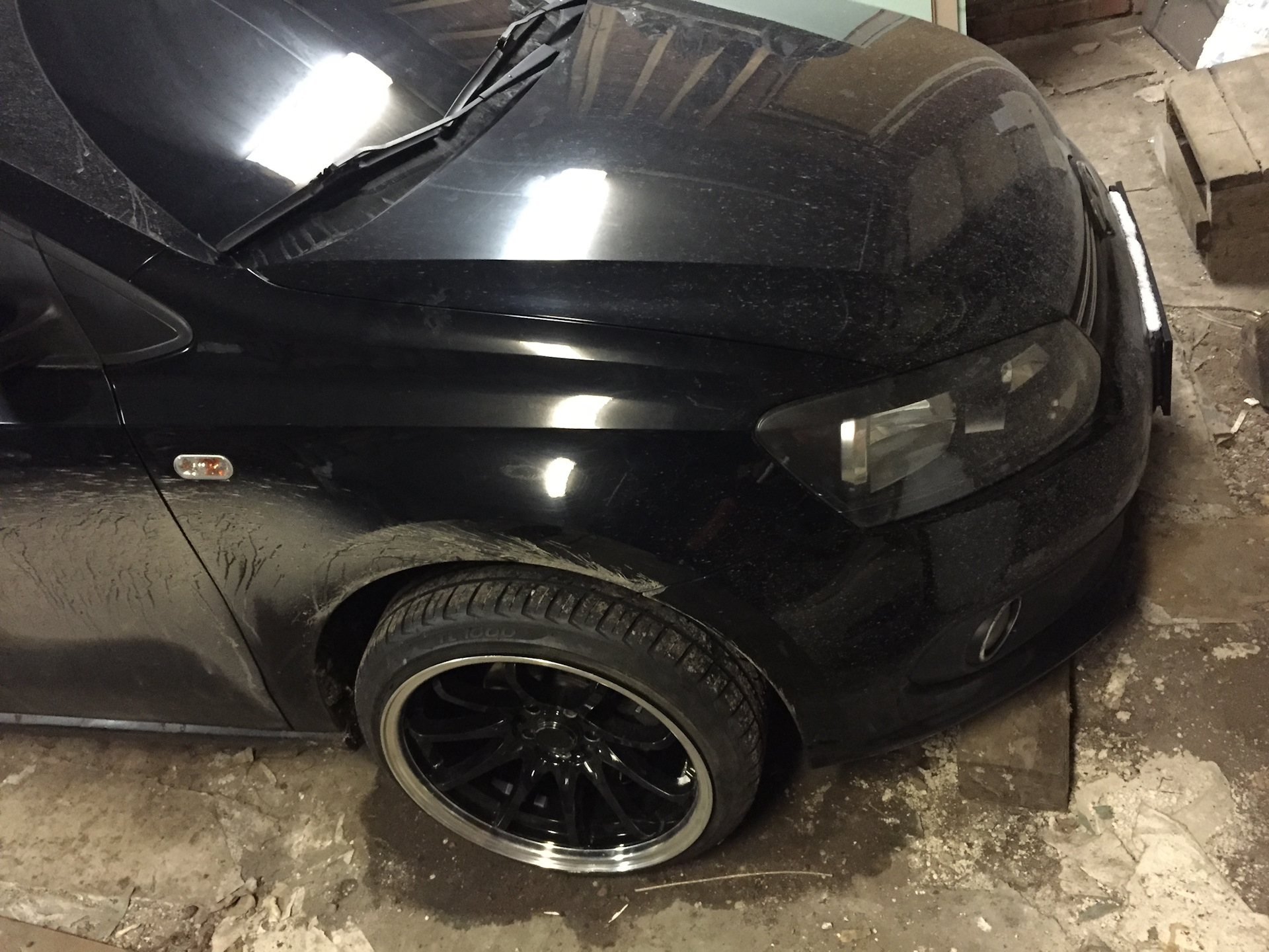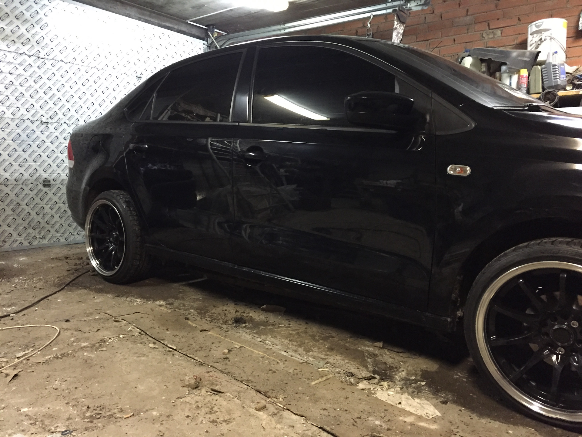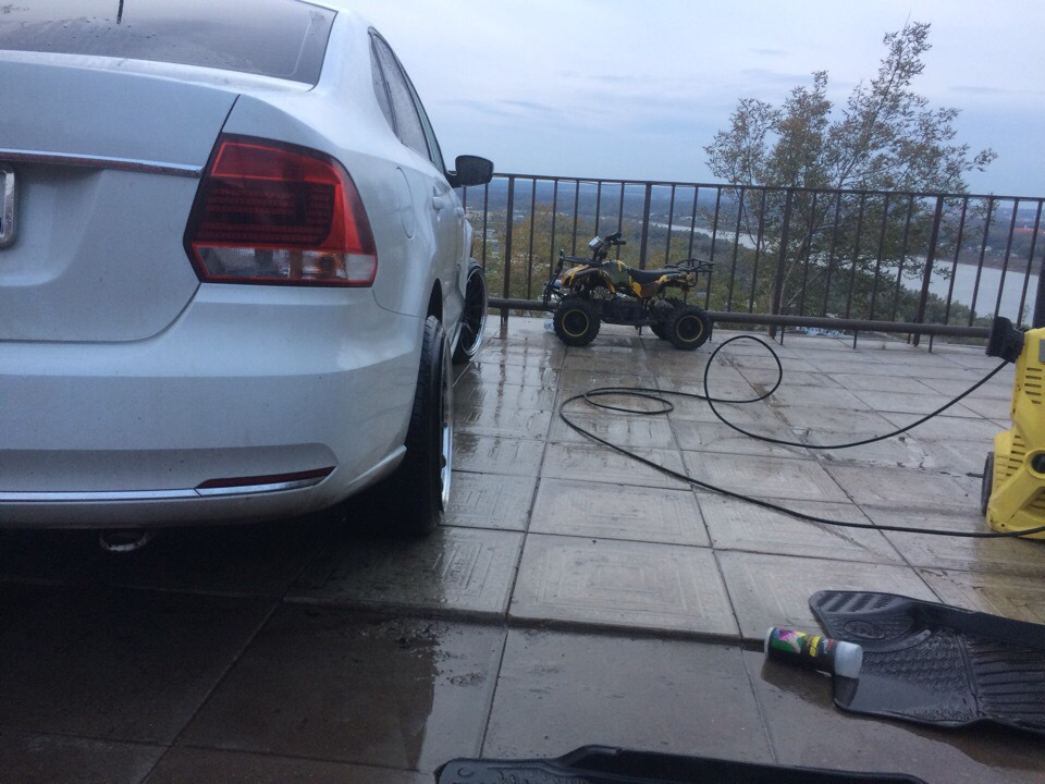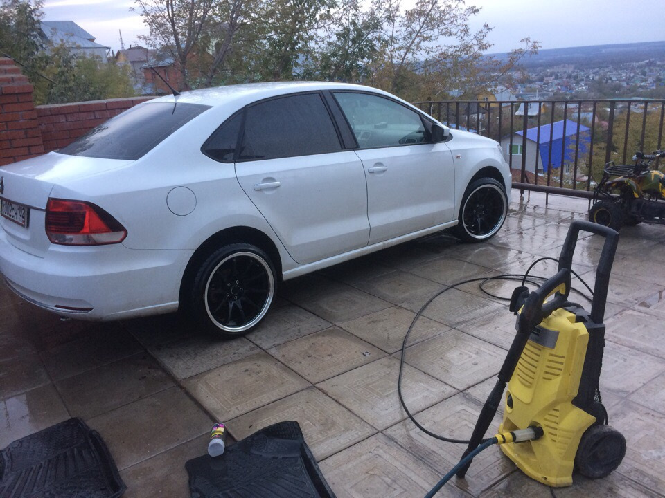 А вот и первые нештяки, название дисков незнаю брал б/у но в хорошем состоянии резина как новая, все началось месяца 3 назад, в одной из групп поло седан выложили эти диски, ну я списался все узнал а именно кривые не кривые, сварка не сварка. Продавец сказал почти идеал, есть местами бордюрка.Я его в закладки добавил так как денег небыло и просто так сказать нет нет посматривал фото этих колёс. Тут где то с пол месяца назад друг решил себе прикупить 17е колеса, я как то позавидовал ему и в голову пришла мысля, а я что рыжий? Я тоже хочу 17шки😃, все как то само получилось и зп пришла и пишу продавцу, не продал ли? А он, я и забыл про них, лежат на балконе))с друзьями собрались и поехали за ними, они были в другом городе 130 км вообщем вышло от моего до его дома. Скажу вам когда их я увидел в живую я чуть в коленях присел😃😃😃, они такие широкие😃просто до этого ни когда не сталкивался с широким дисками. Мы их сразу на мойку, потом на шинку.Все проверили все в норме ровненькие, расчитался и разъехались. Вот так я стал счастливым обладателем колёс р17, А теперь о параметрах колёс, Диски р17, ширина 9J, et20:Разболтовка 5.100 и 5.114,3 чёрный глянец с хром полкой, резина 205.40. Теперь возникла новая головная боль, они широкие, см 2-3 выпирают из арки, как быть и что делать?