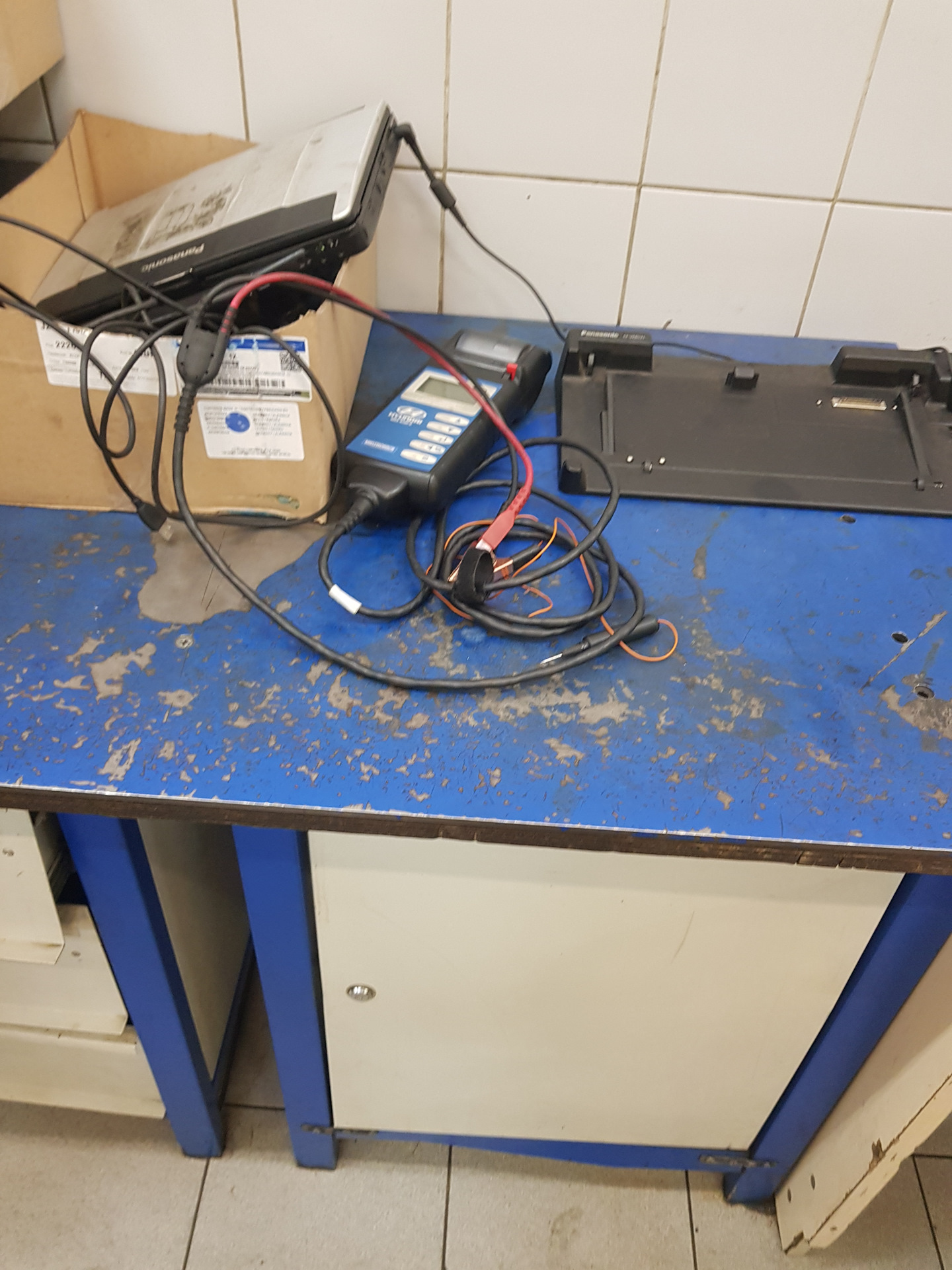 Не знаю, что это был за прибор, по идее должен был быть прибор который тестирует батарею и выдает чек с кодом, на котором написано что надо сделать с батареей. Зарядить или заменить. По крайней мере это мне рассказал мастер, у которого я менял масло в АКПП три недели назад у этого же дилера.