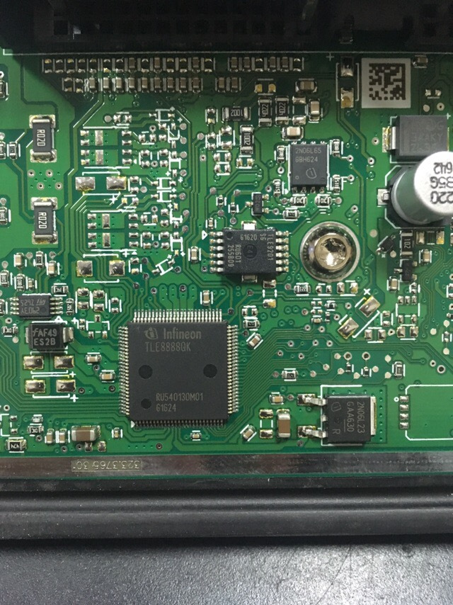 Явно подгоревших элементов нет, начинаем ради интереса искать CAN трансивер, надеялись что он будет выполнен отдельным элементом, но фиг там (((