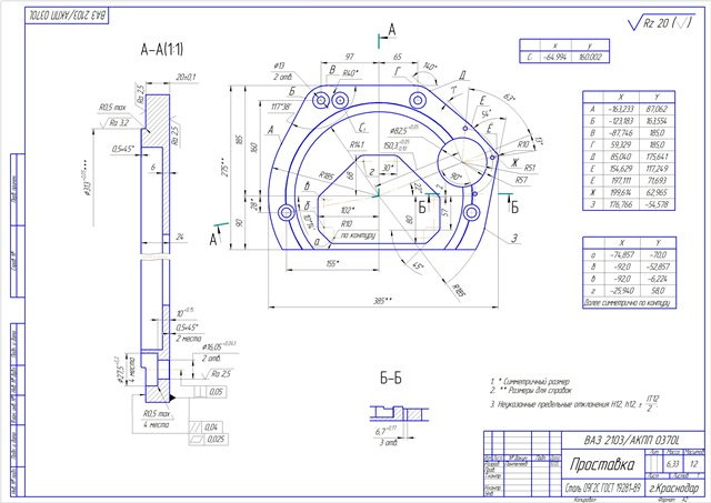 Расскажу немного о нюансах сопряжения АКП через переходную плиту. Понятно, что есть плита (вырезанный контур), в котором сделаны отверстия для крепления её к мотору и отверстия крепления к ней КПП, но это не главное. Главное – соблюсти соосность первичного вала КПП с осью коленвала мотора. Как я понял, чертеж Михаила – это переработанный чертеж плиты для стыковки жигулевского мотора с КПП ЛуАЗ, с готовыми посадочными отверстиями под болты жигомотора и указанной осью коленвала мотора, на которой был размещен посадочный диаметр КПП, попросту был сделан буртик высотой 4мм.
