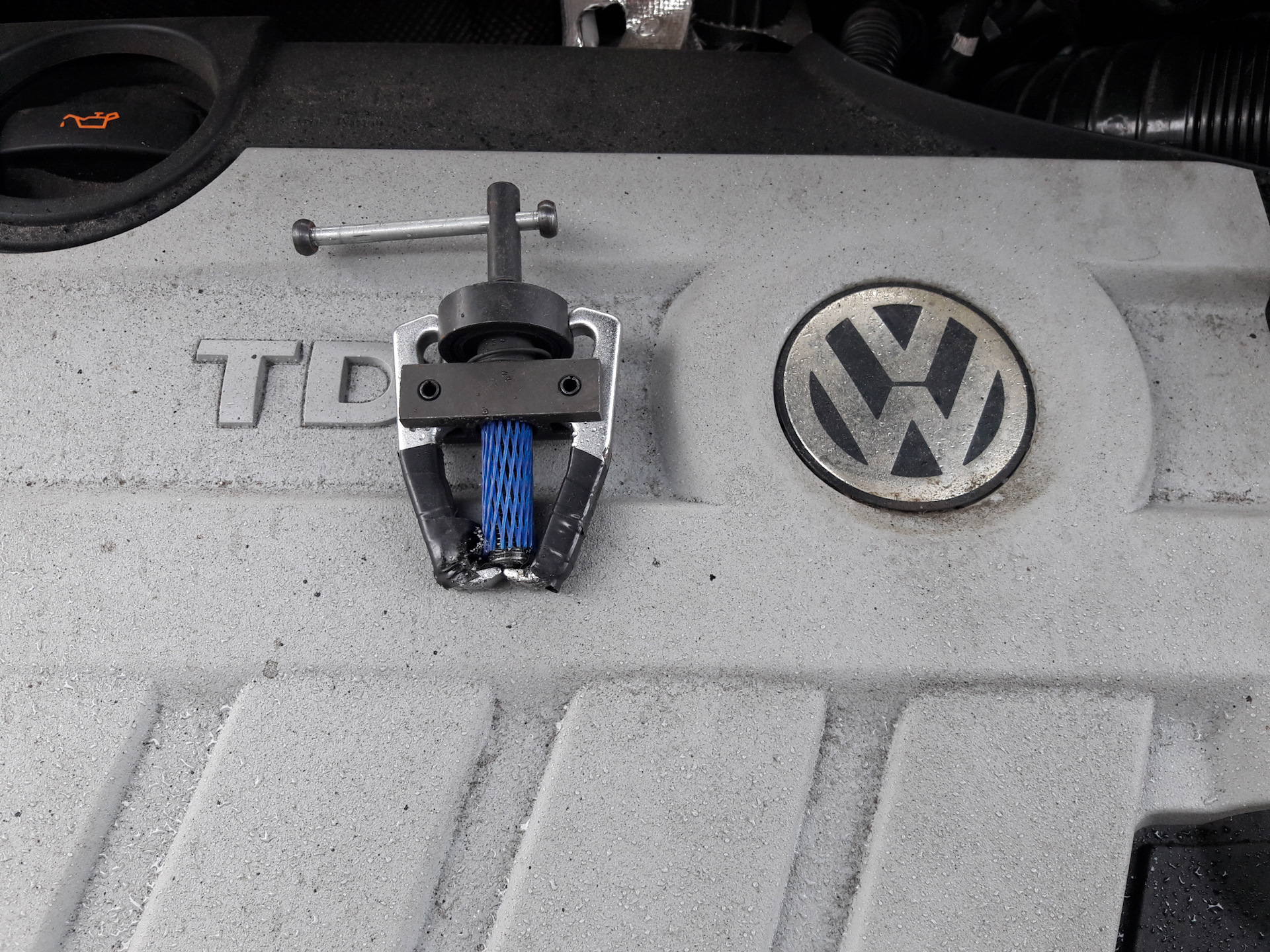 — Вооружившись терпением и проникающей смазкой, стягиваем поводки при помощи съемника.