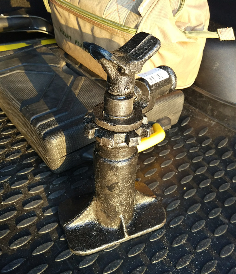 Вот это недоразумение штатное можно смело выбросить. Он из сыромятины. Лучше взять подкатной от 2,5т. Штатный когда достал и оценил сразу стало понятно что он для галочки, что типо есть в комплекте. Знакомый уговорил попробовать поднять им машину в гараже на ровном полу, но он с этим не справился, резьба как пластилин, в итоге резьбы не стало.