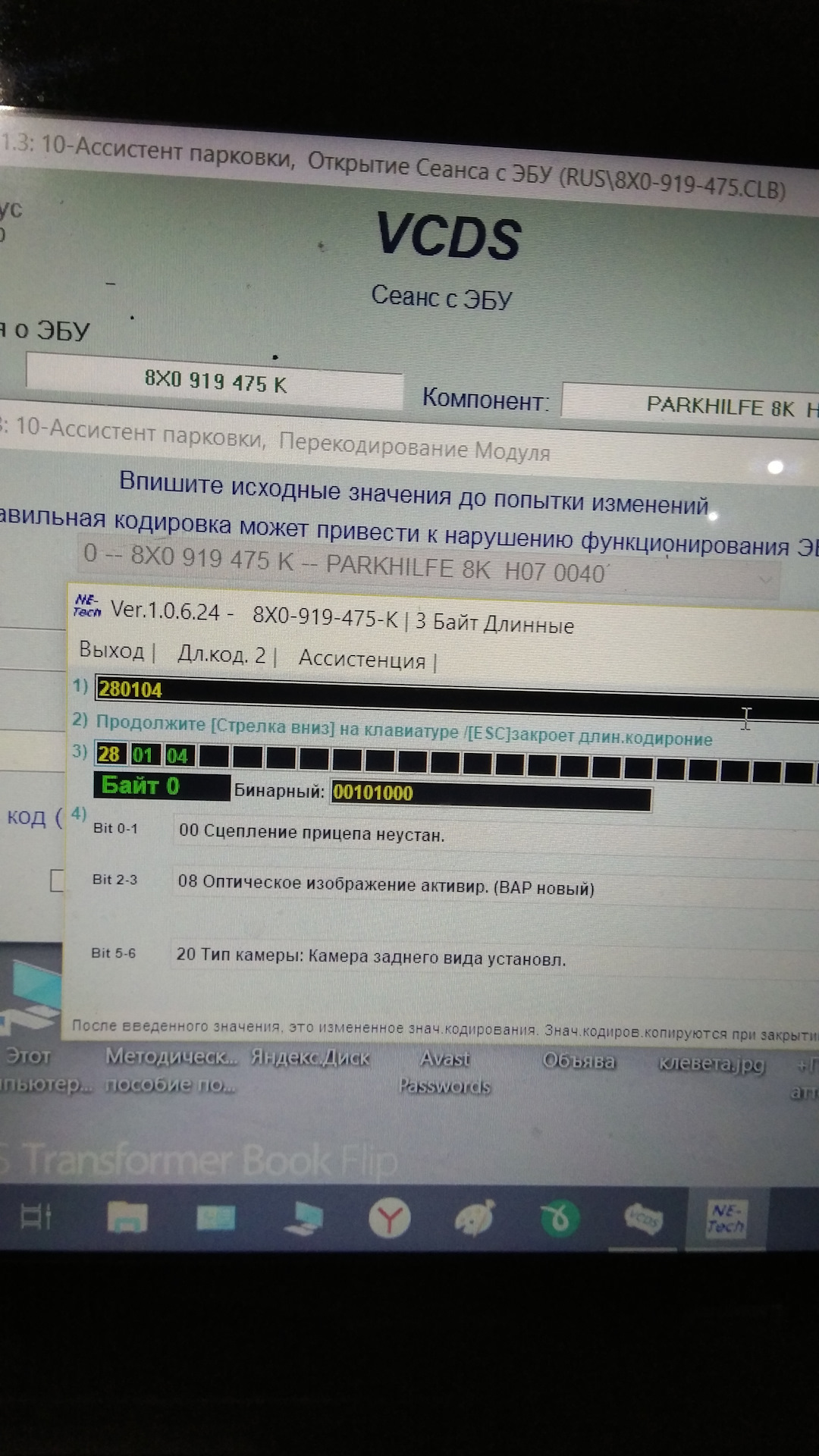 Прилагаю для тех кто сам решит отважиться на установку оригинальной камеры, фото со своими кодировками. Измучался я просто с этими кодами что, куда и главное как писать нужно. Может быть пригодиться кому ни будь. Процесс установки описан Сергеем здесь. Начало установки тут. На очереди теперь калибровка и установка омывателя камеры. Необходимый комплект для омывателя приобретен и ждет своего часа.