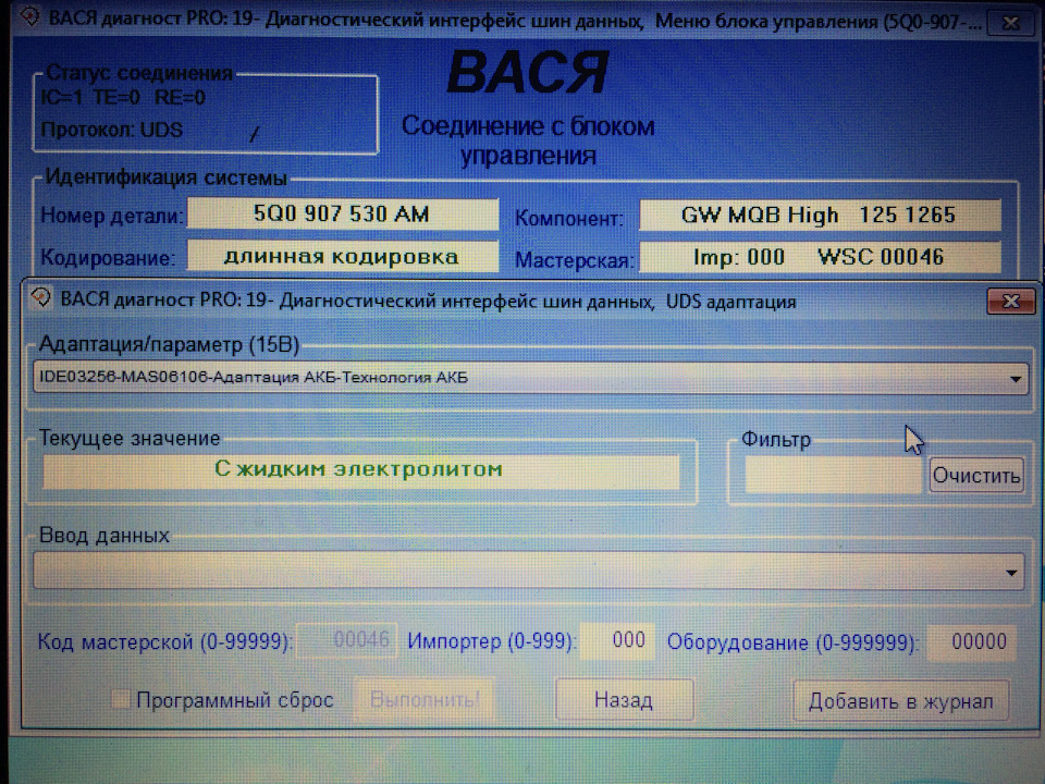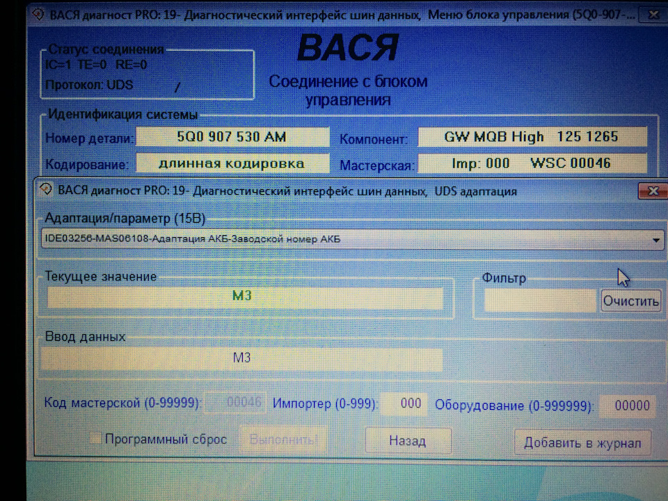 Берем Васю и заходим в 19 блок(диагностический интерфейс шин данных), далее в адаптации, находим каналы IDEO 3256-здесь и меняем на нужные значения.