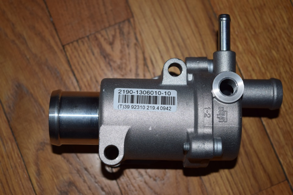 Но некоторые пишут, существует еще один термостат, якобы с обновленной приоры, на котором есть еще один дополнительный штуцер. Это дополнение в принципе нужно, только тем у кого стоит механический дроссель и его нужно подогревать.