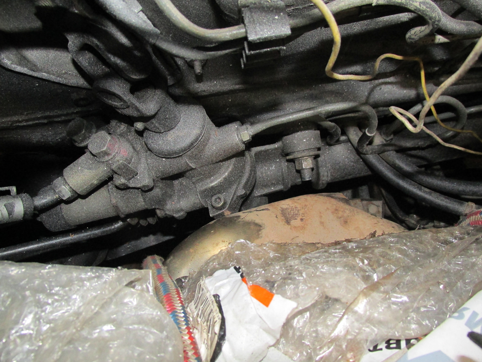 Нет, ровно наоборот) Трос газа идет от мотора круиза под воздушной гофрой, затем поворачивает за мотор на лево, крепится к моторному щиту, впускному коллектору и уходит в салон через моторный щит. А второй трос просто идет от мотора круиза на дроссель. На без круизной комплектации все проще, просто из моторного щита вокруг мотора и к дросселю