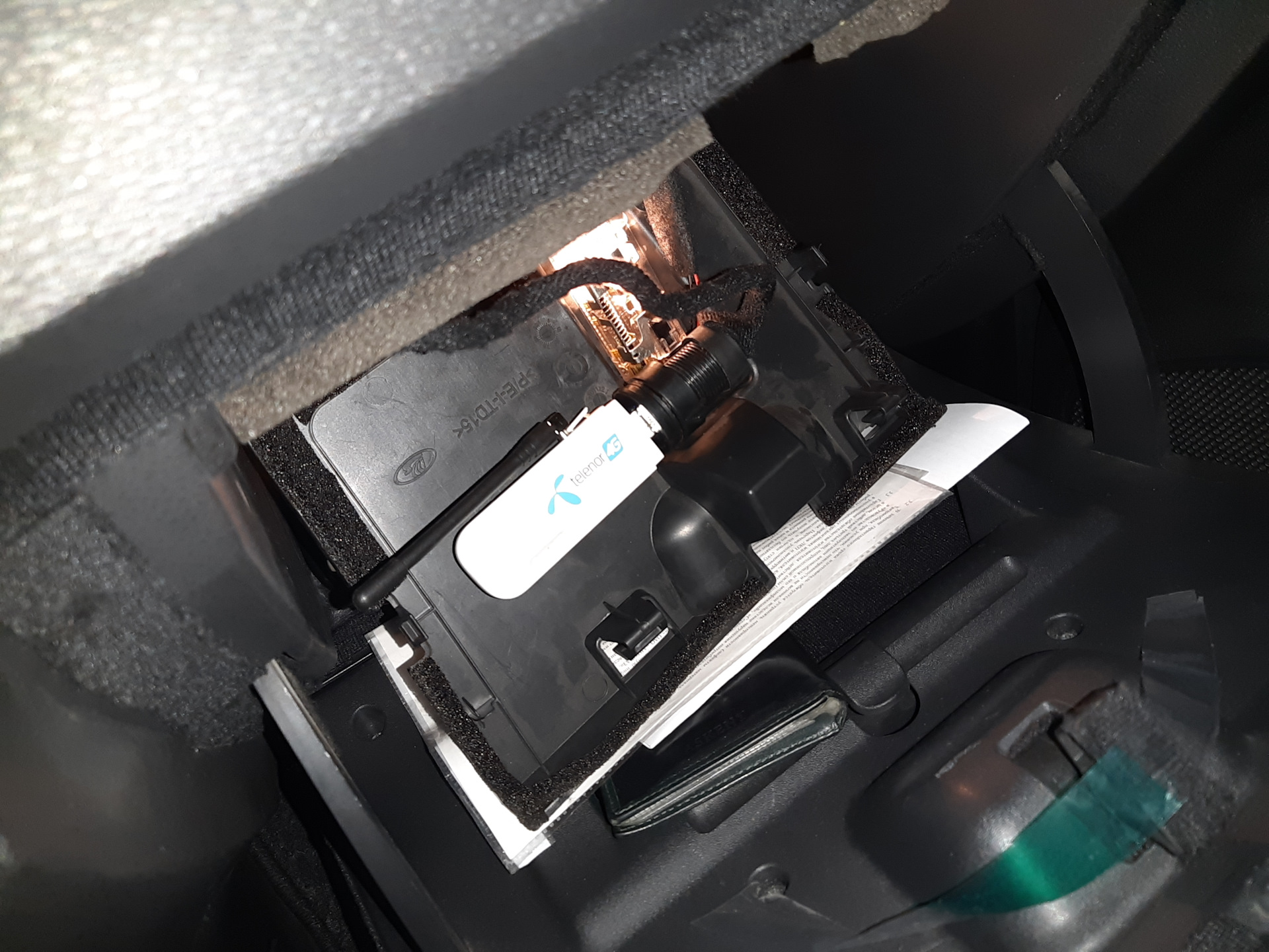 с опцией вай фая для раздачи интернета на магнитолу. Раньше я его вставлял в прикуриватель в багажник, либо в розетку, но наконец то я нашел для него место. Теперь он у меня там же, где и модуль переднего парктроника и плата согласования.