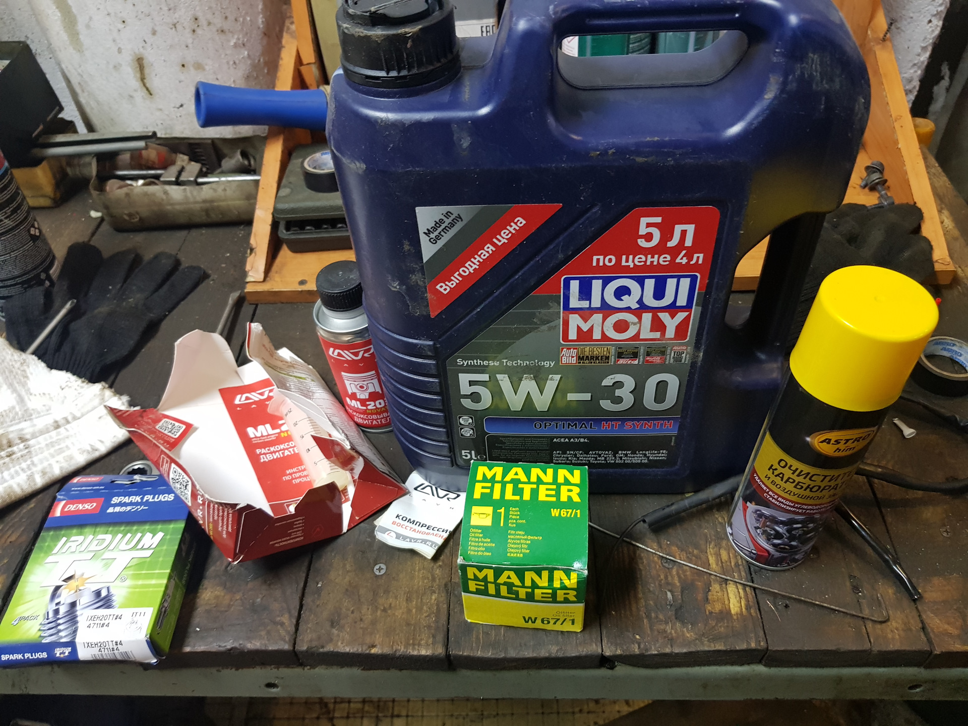 Почистили дроссельную заслонку и как раз прошёл 1 час. После раскоксовки заводим машину и даём поработать 5-10 минут. Далее сливаем грязное масло и заливаем свежее и меняем свечи)