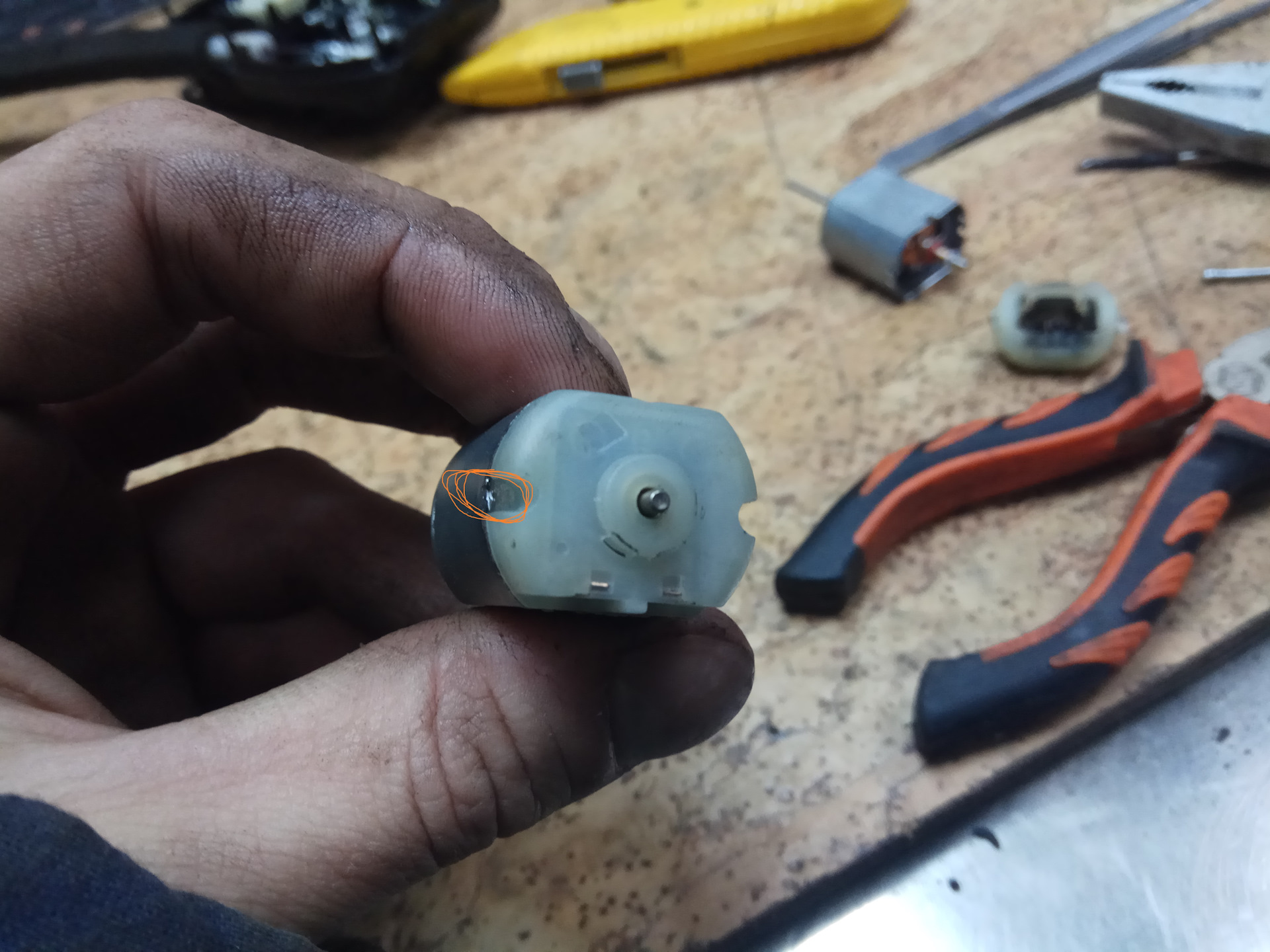 Я просто поменял эту белую хрень со щётками и промыл моторчик в бензине