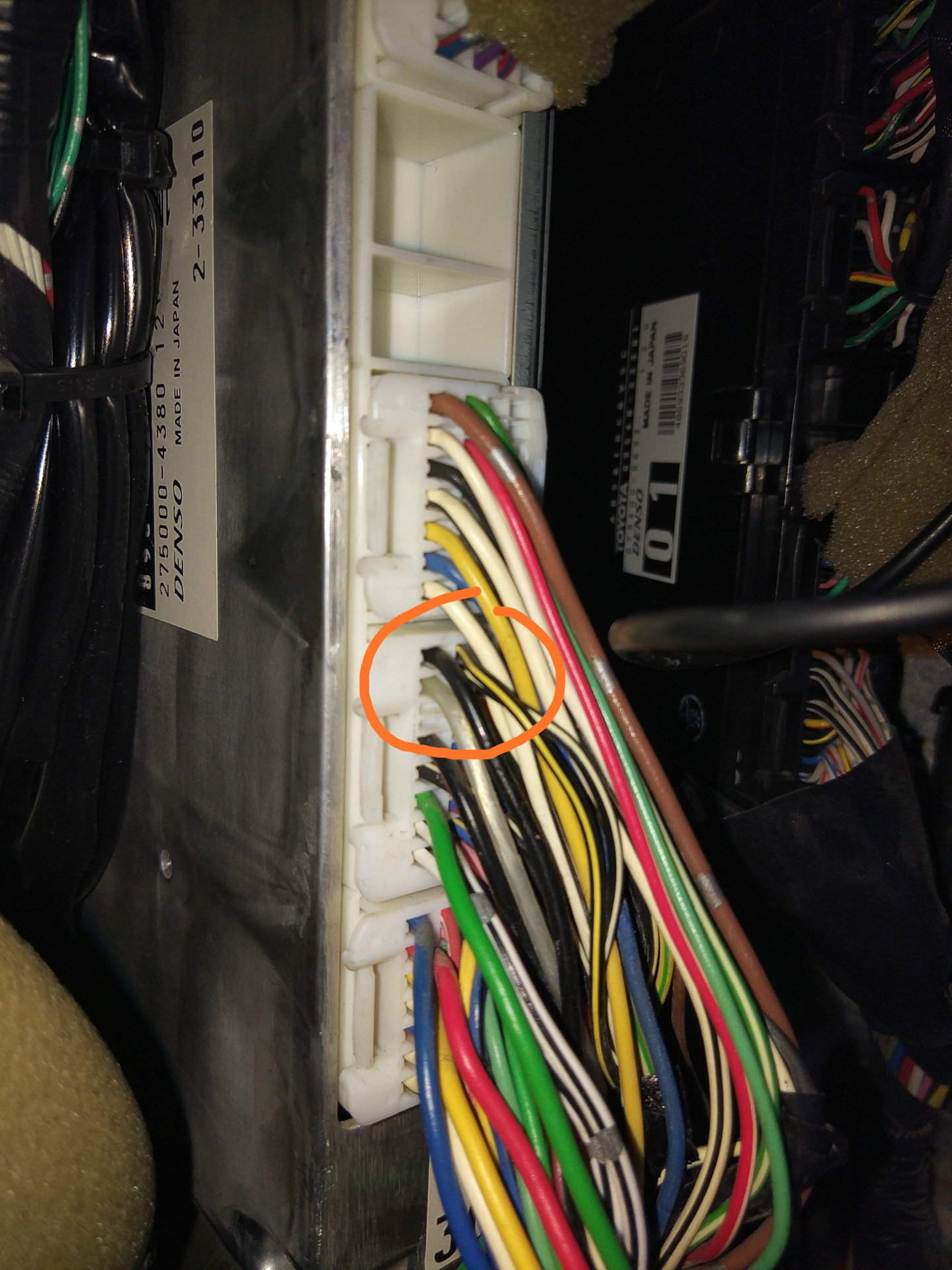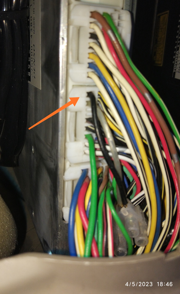 Вот колодка моя, ее расположение на блоке, провода расположены с краю фишки