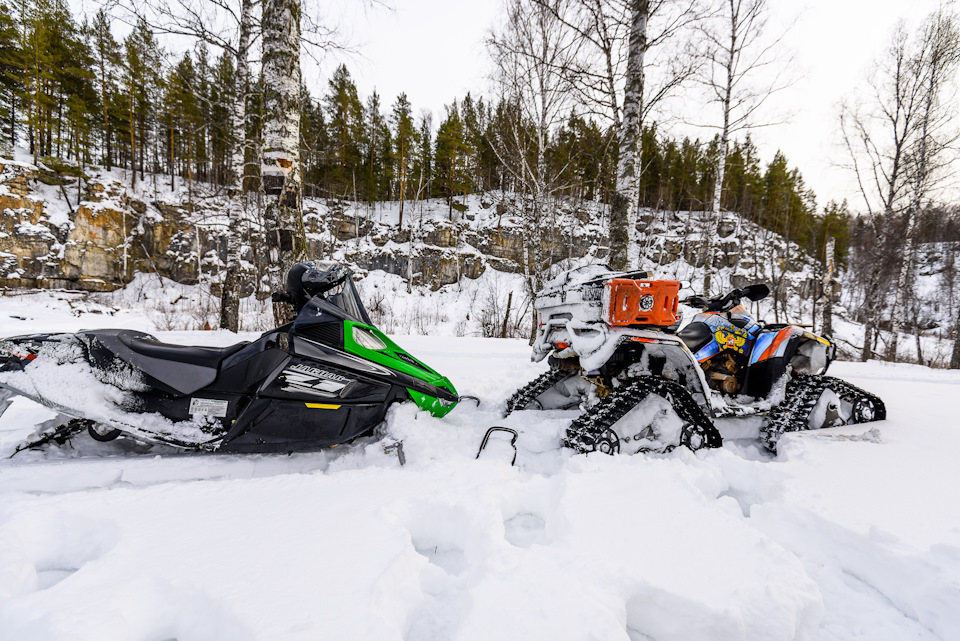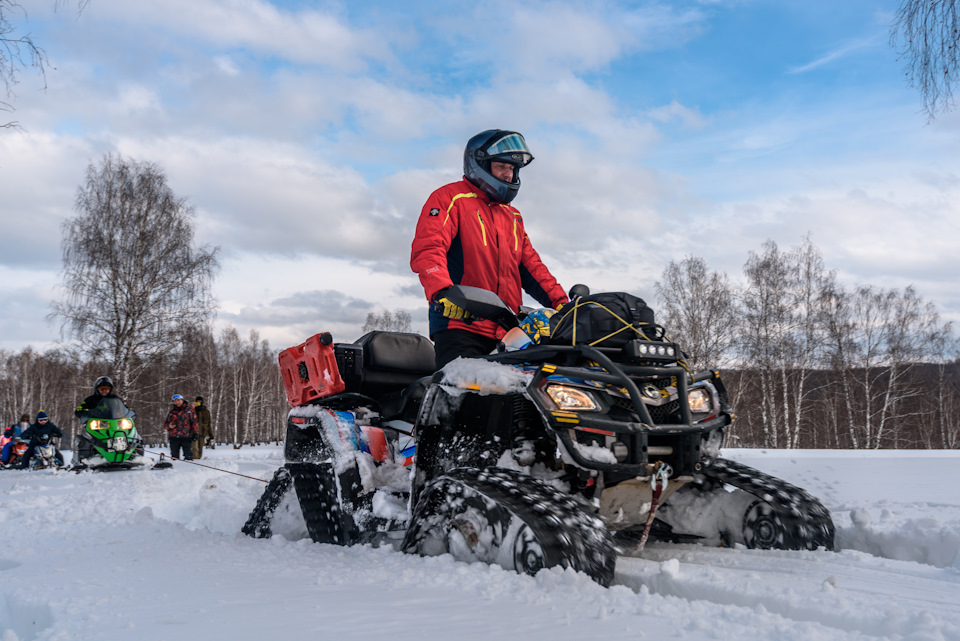 Пара — снегоход и квадр на гуслях, хорошо друг друга дополняют, квадр проваливается реже, но если провалился — только ягуаром выдергнуть. Кенгу совсем слабосильные, они за ягуаром по пробитой колее, замыкает квадр — он колею портит и слишком медленный и тяжелый. Но без него никак — периодически вытаскивает "сидельцев" на снежиках :))