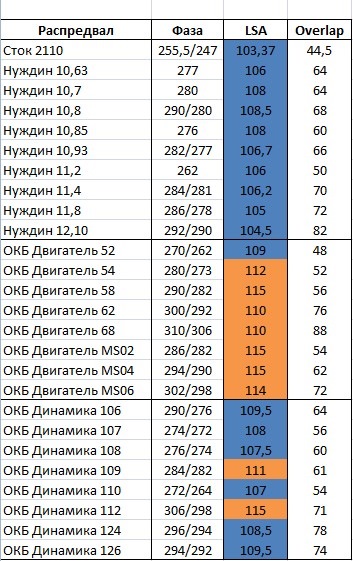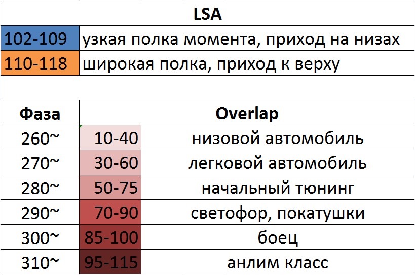 240выпуск, 232 впуск… lsa 96 и overlap 44