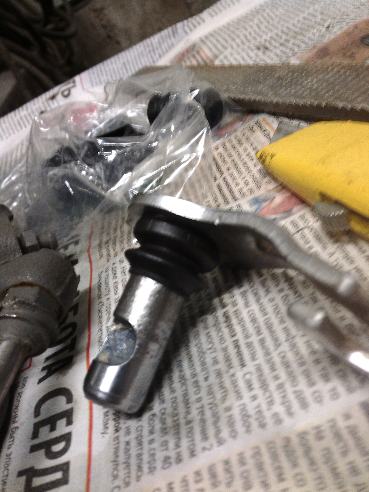 небольшая модернизация от пыльника направляющей немного отрезаем и одеваем на ось рычага