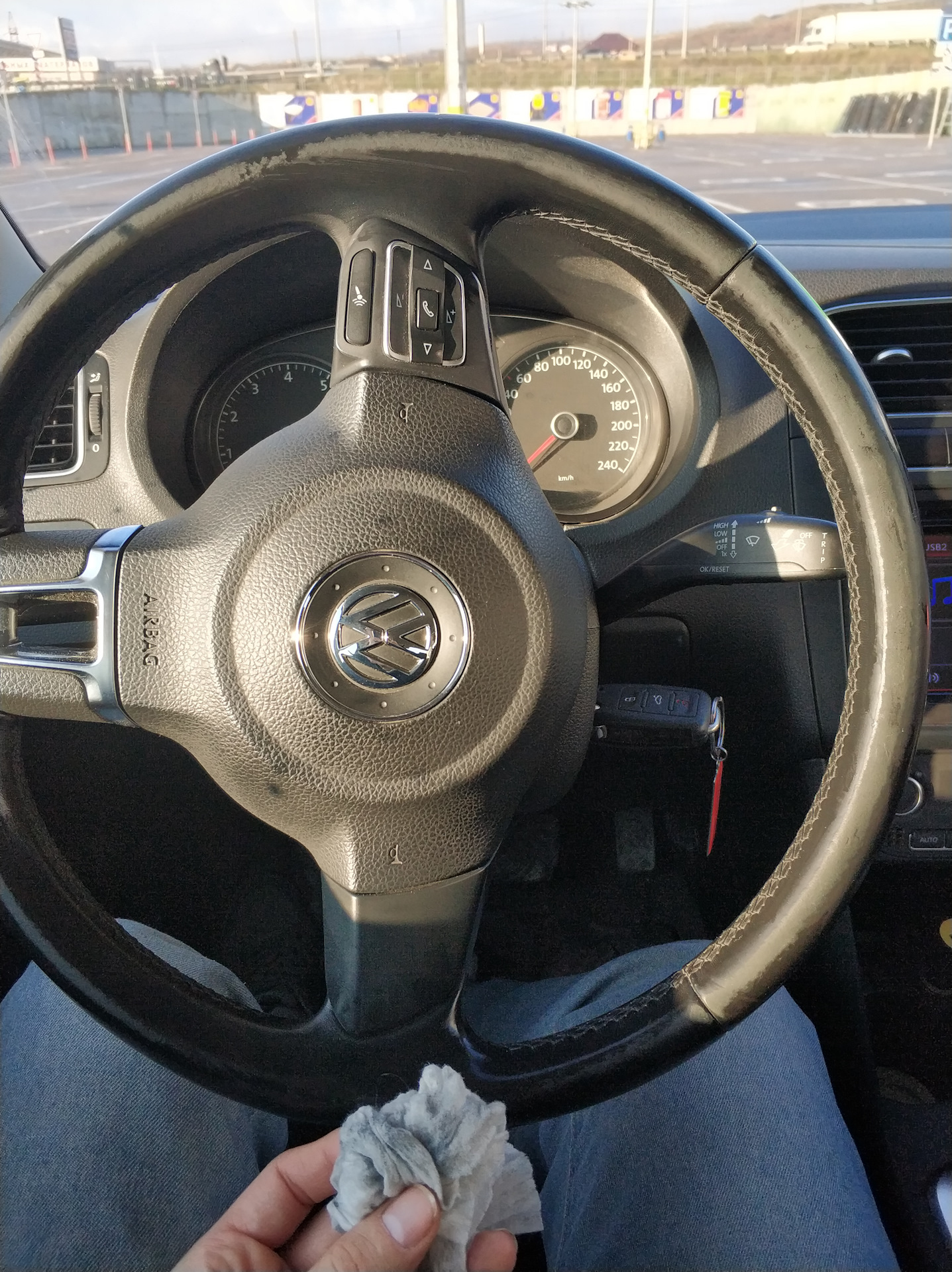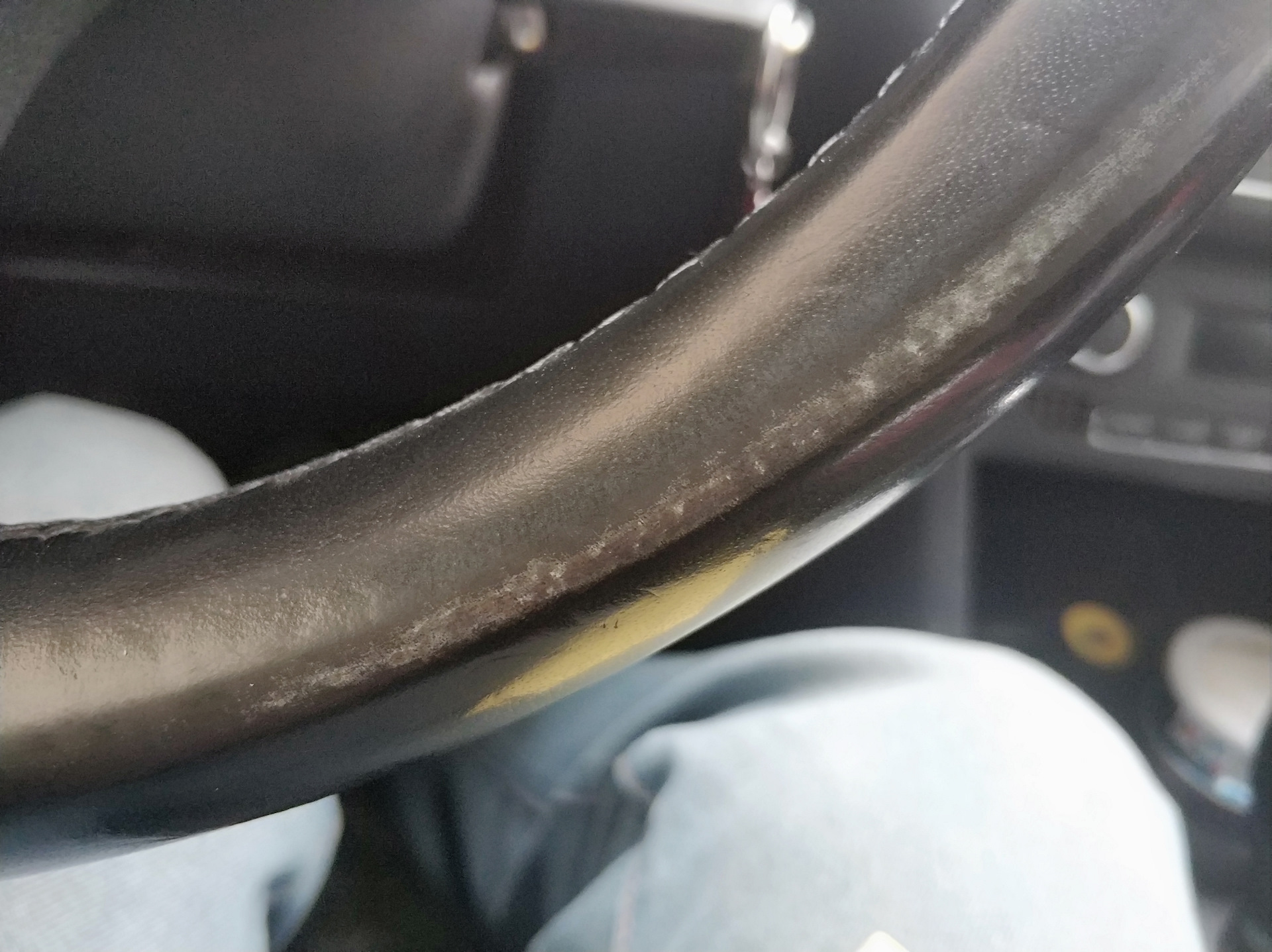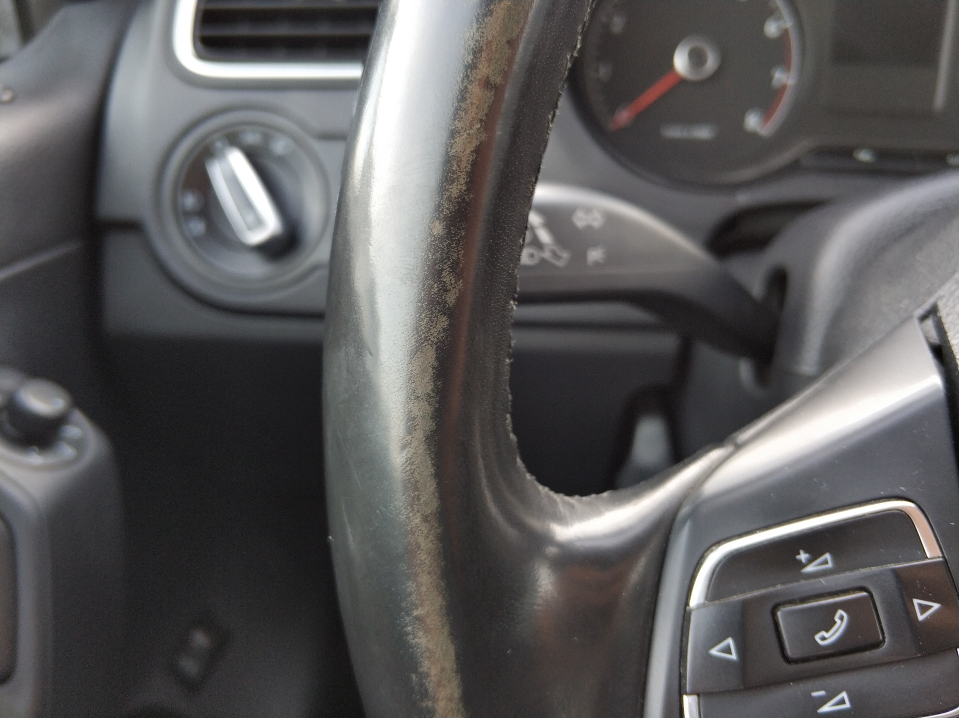 Руль у моего поло затерт таким образом что можно понять что предыдущий хозяин не крутил его перехватами и т.д. а просто давя ладонью открытой всегда при поворотах (