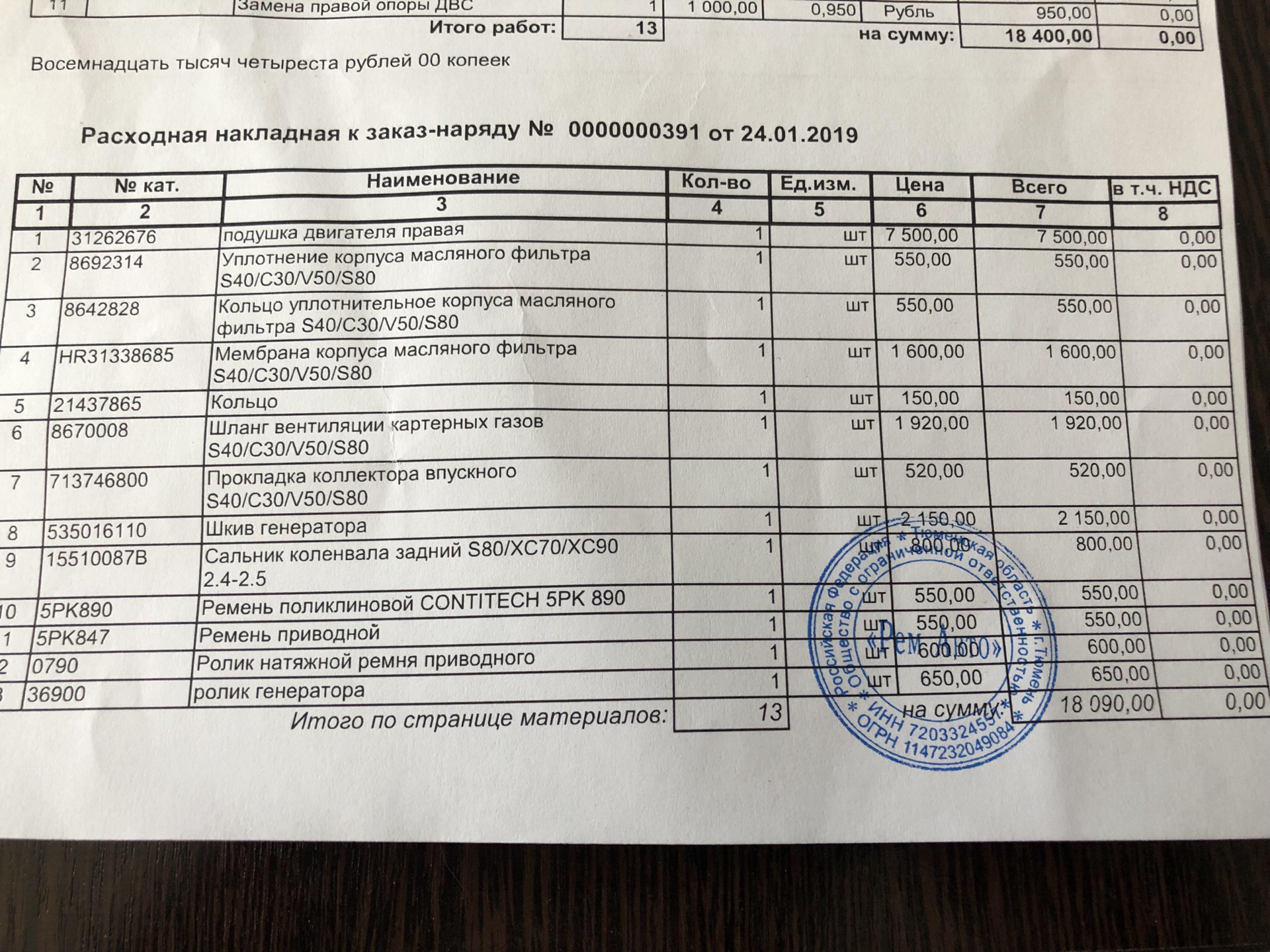 Как то у меня выскочил чек, после приобретения Авто, заехал к ребятам в сервис ( данный сервис по Вольво, посоветовали люди на местных форумах). Там мне предложили полный осмотр Авто. Я согласился, ну и собственно вот результат. Приговорили замену маслопомойки, подушек, сальников, по мелочи по подвески и тд.