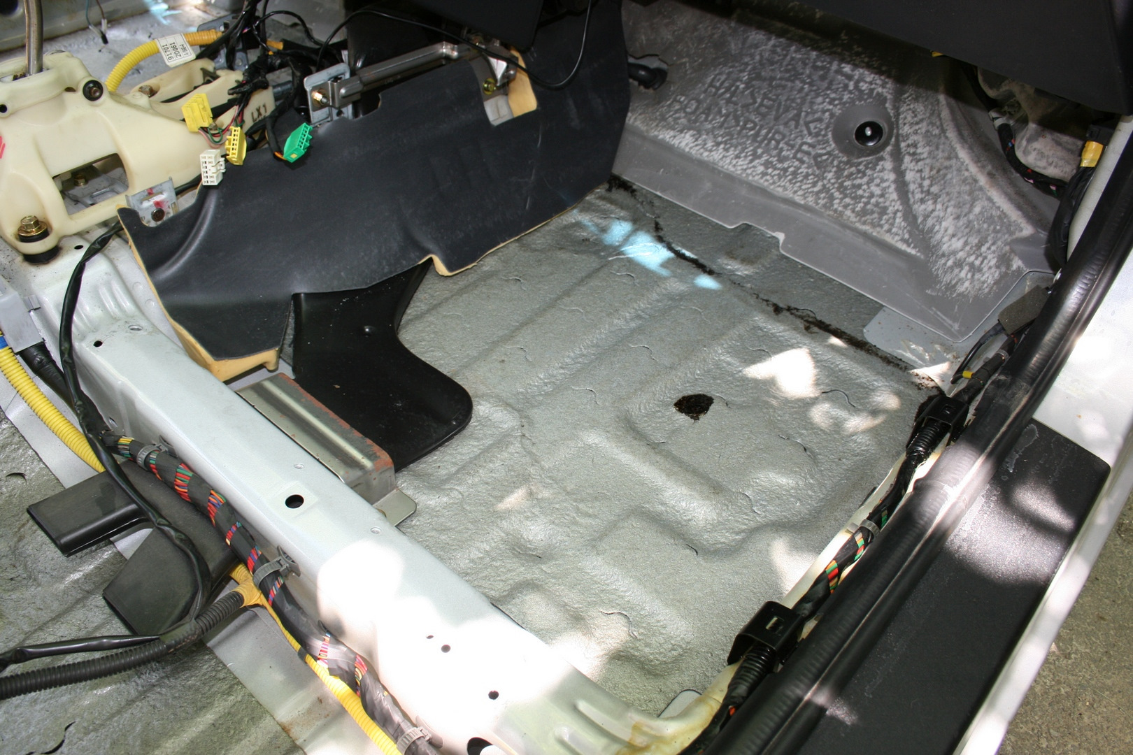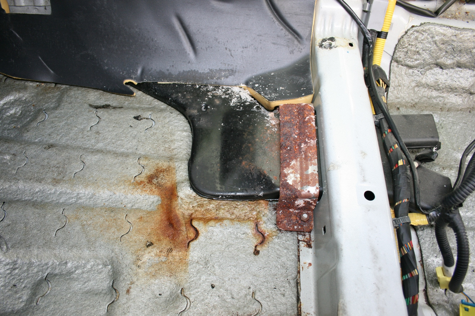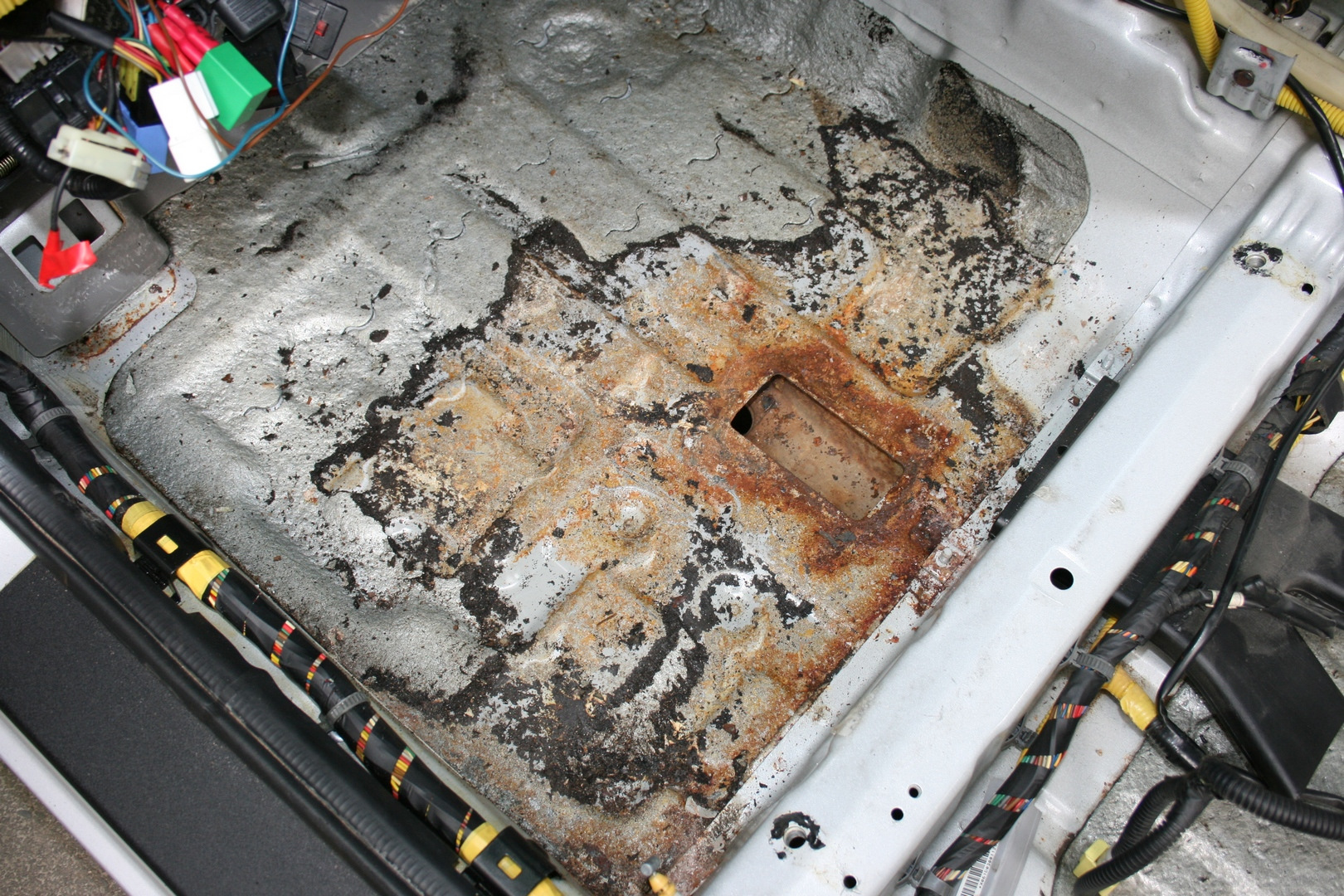 Я напомню, почему я переживаю за воду на полу. Ну, во-первых, вы уже видели, сколько ее образуется у меня буквально за одну поездку. Соответственно объемы за зиму исчисляются литрами. Когда эти литры уходят мимо коврика, получается вот что (это я полез посмотреть на днище полтора года назад)