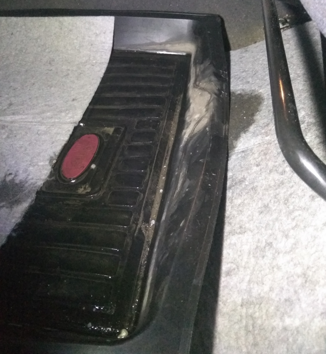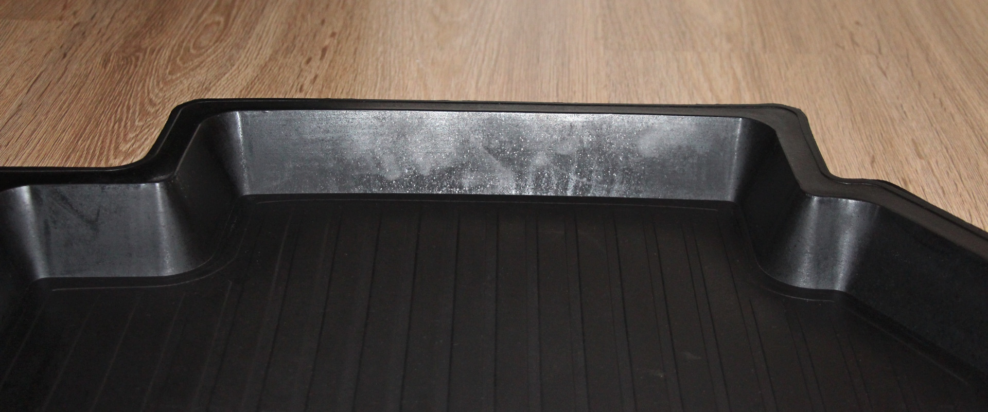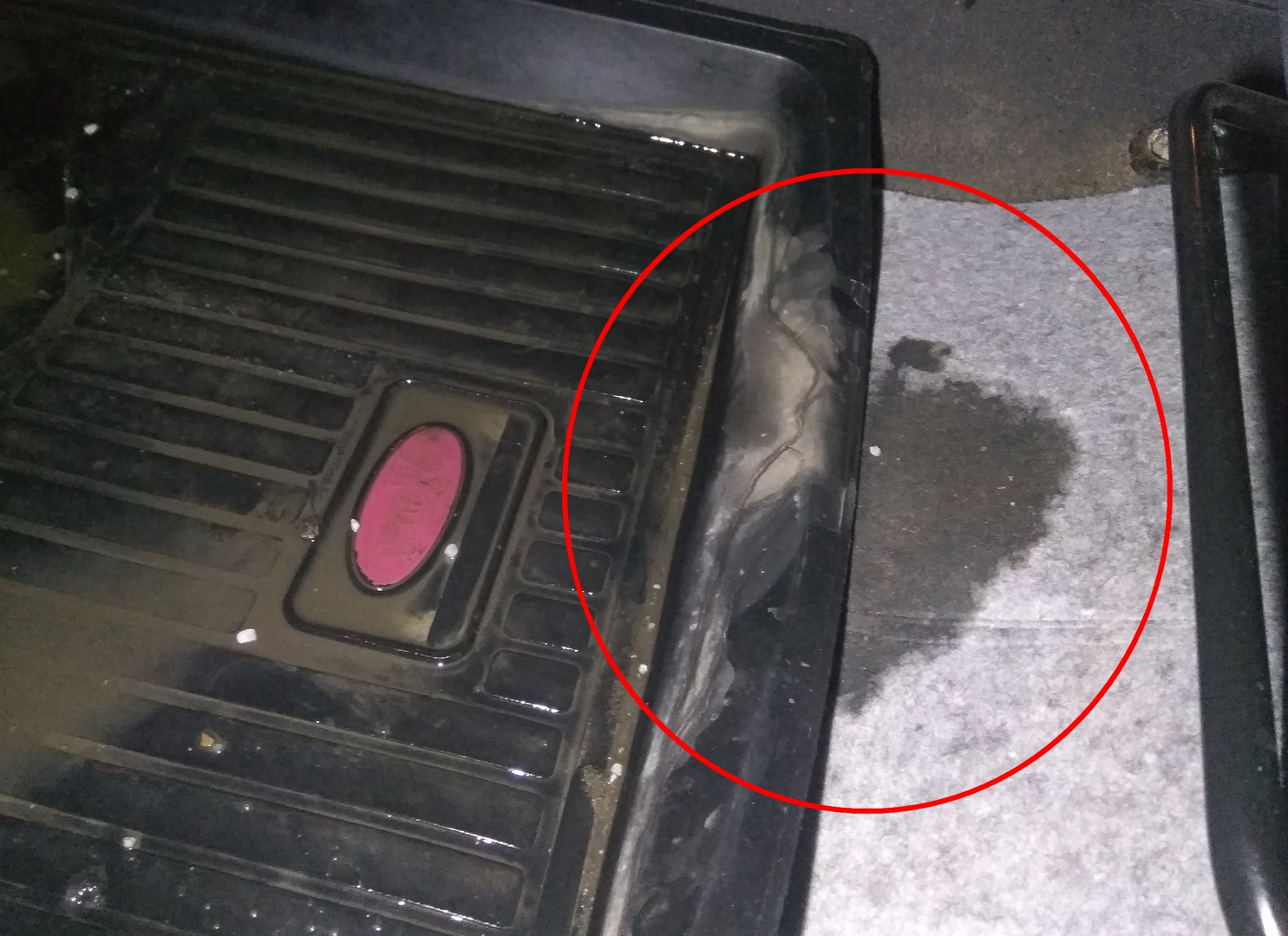 Также, поскольку вода была грязная, на коврике прекрасно видны следы ее движения – как я и думал, уходит через задний провисший борт, в максимальной точке его провисания
