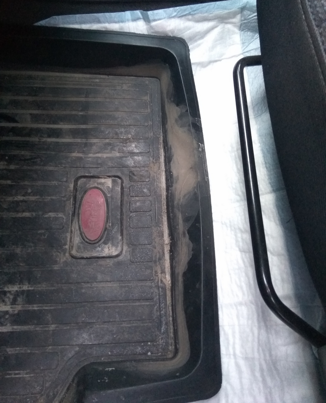 На всякий случай я решил подложить под задний край водительского коврика впитывающую салфетку из Ашана, чтобы хоть как-то защитить ковровое покрытие и днище автомобиля, ну и сразу увидеть следы воды, если она появится.