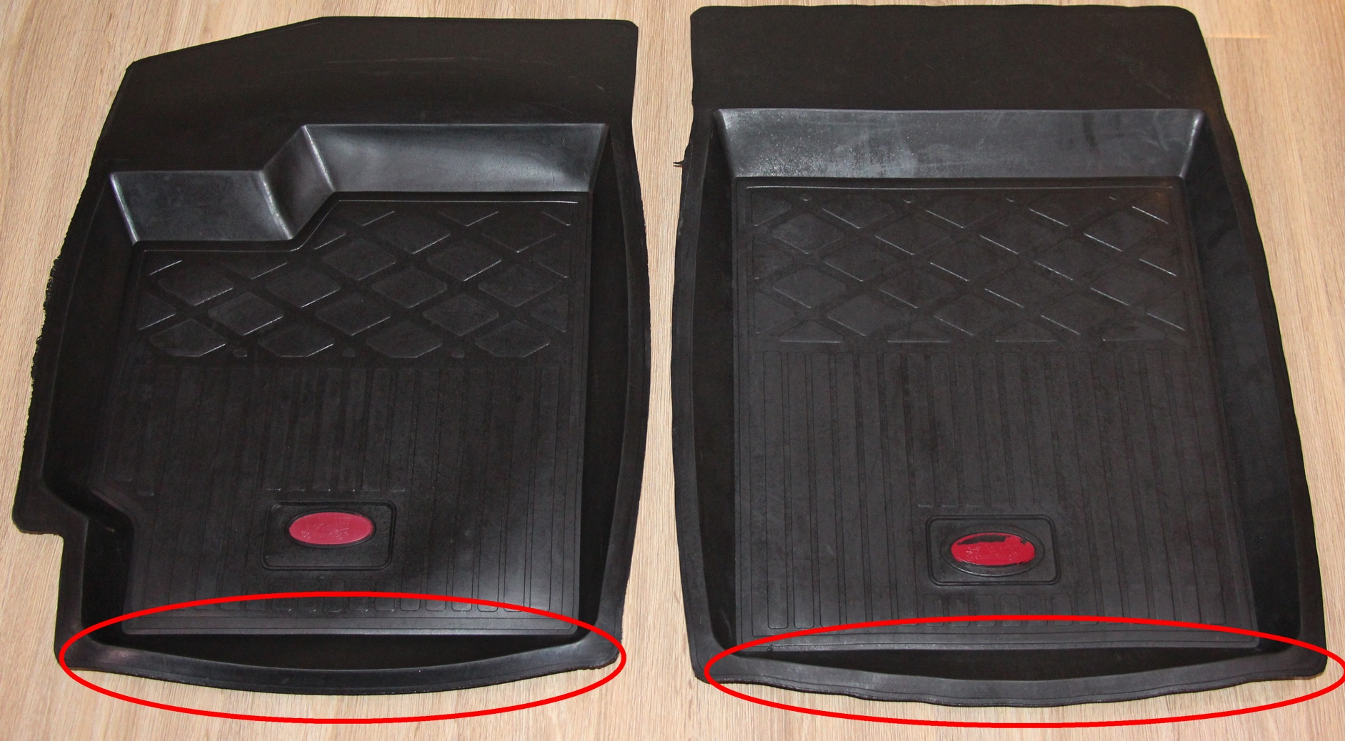 Были такие же коврики на момент покупки, сцепление до конца не выжать, воду не пролив коврики не вытащить. Мне они совсем не понравились, и я купил обычные полиуретановые. Теперь доволен)