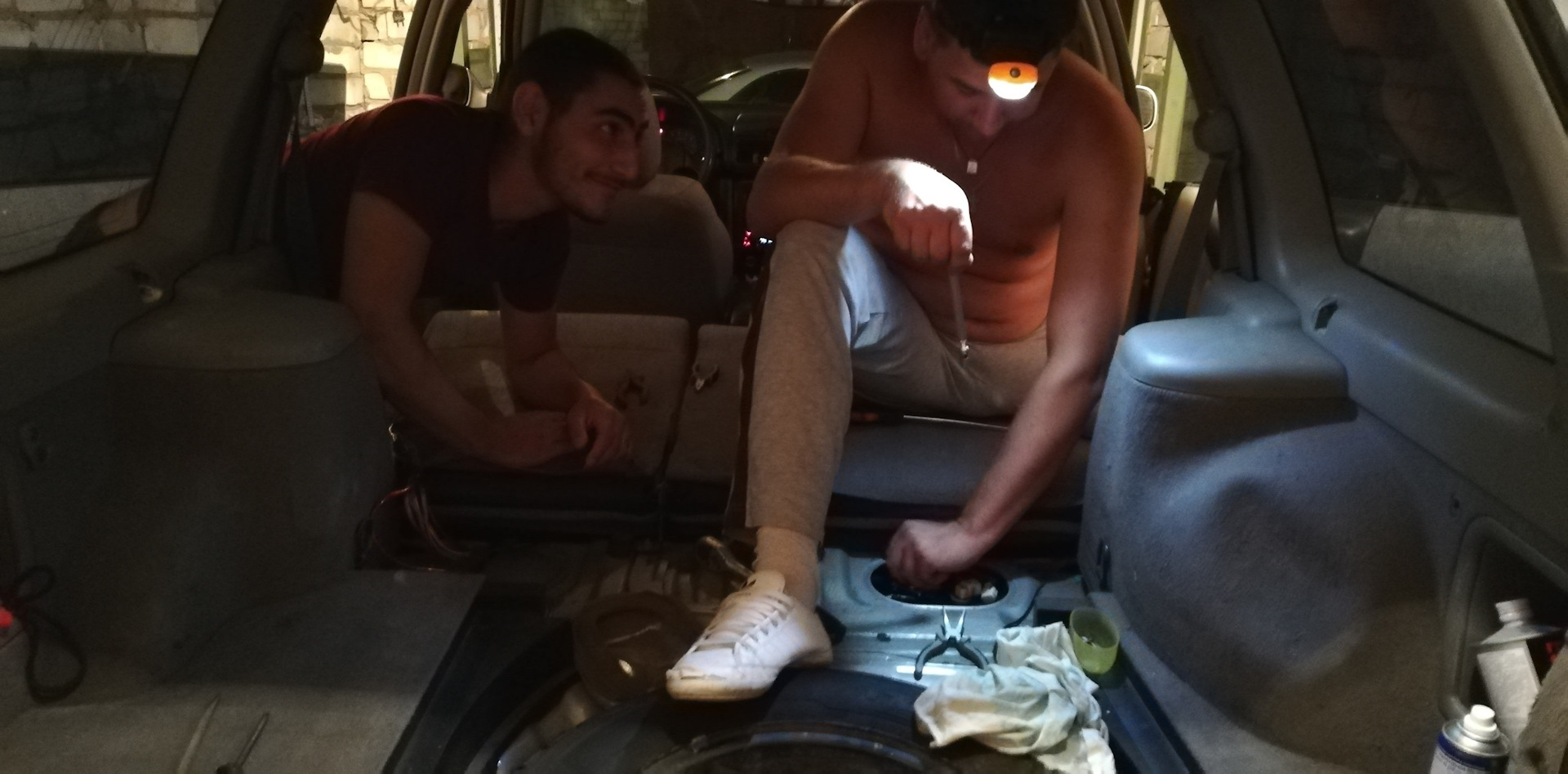 Сняли заднее сиденье, пара болтов и поставили насос. Причем старый выглядит прилично.