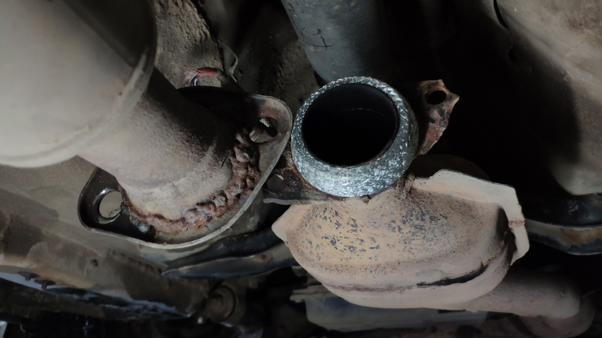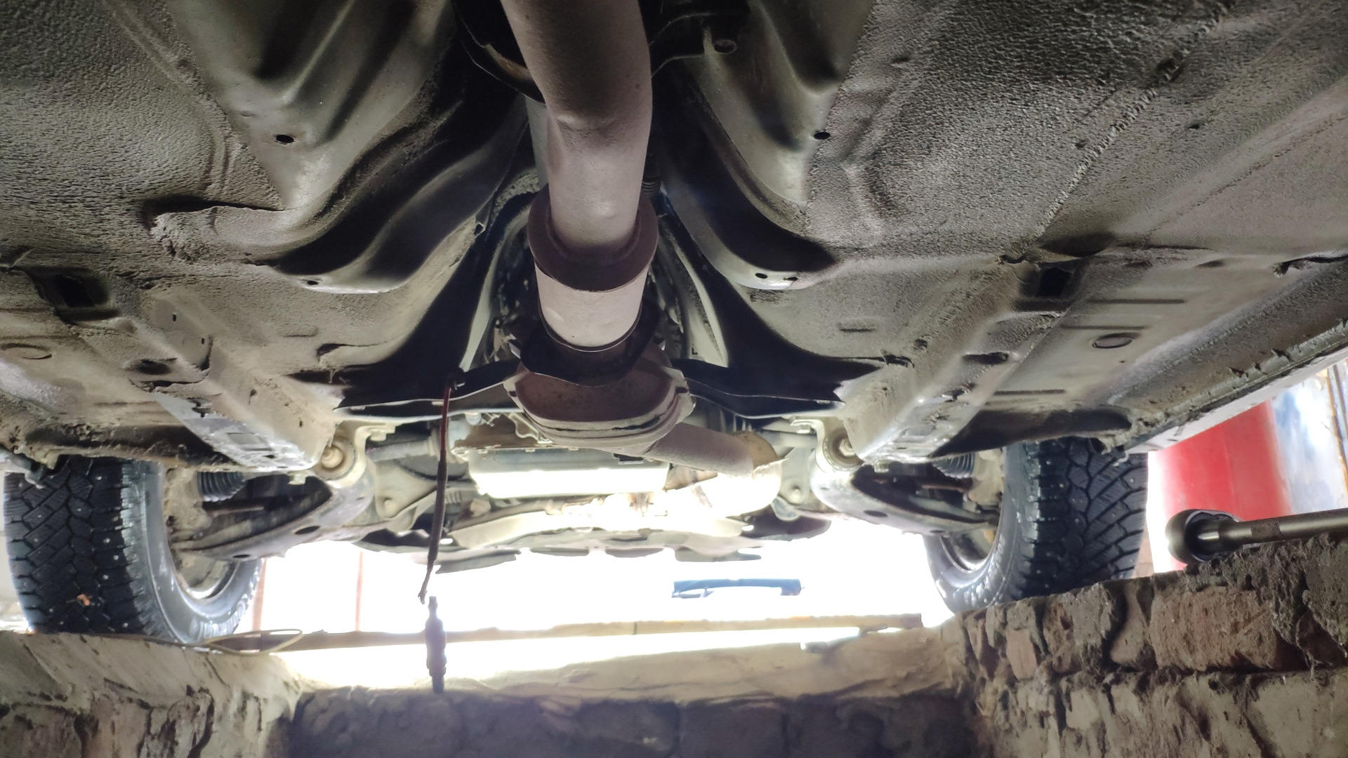 Загоняем на тросу в гараж и снимаем выхлоп. Фото сделал уже после всех процедур.