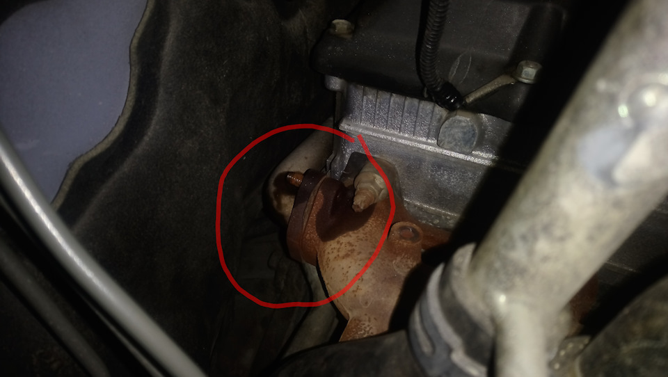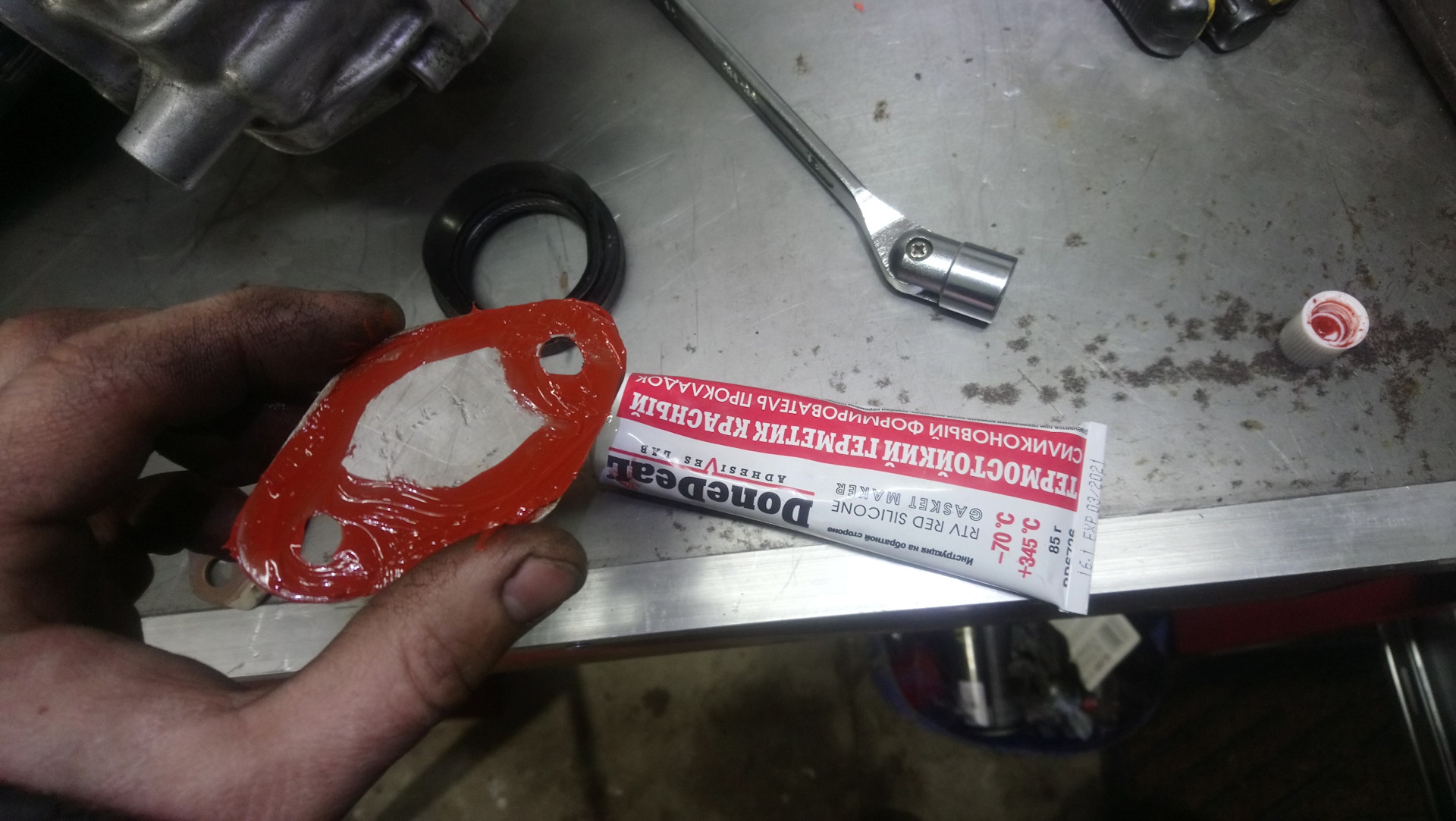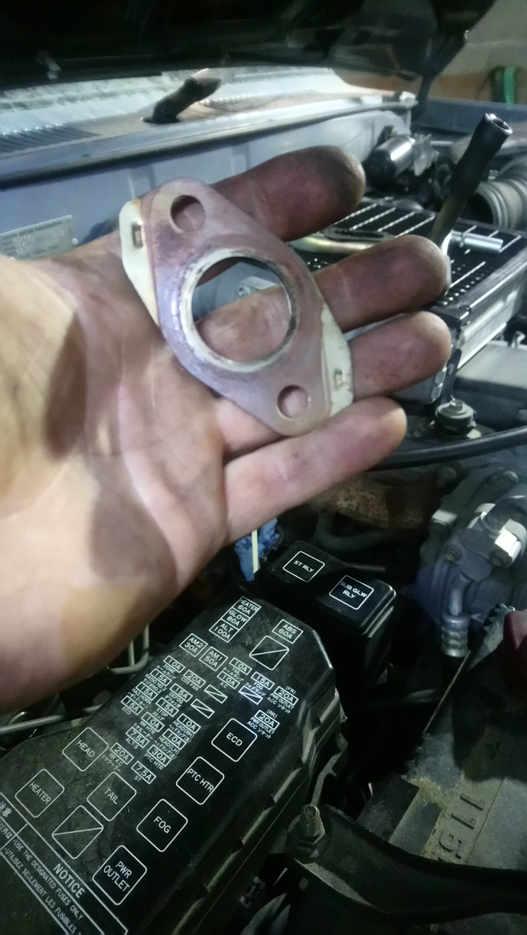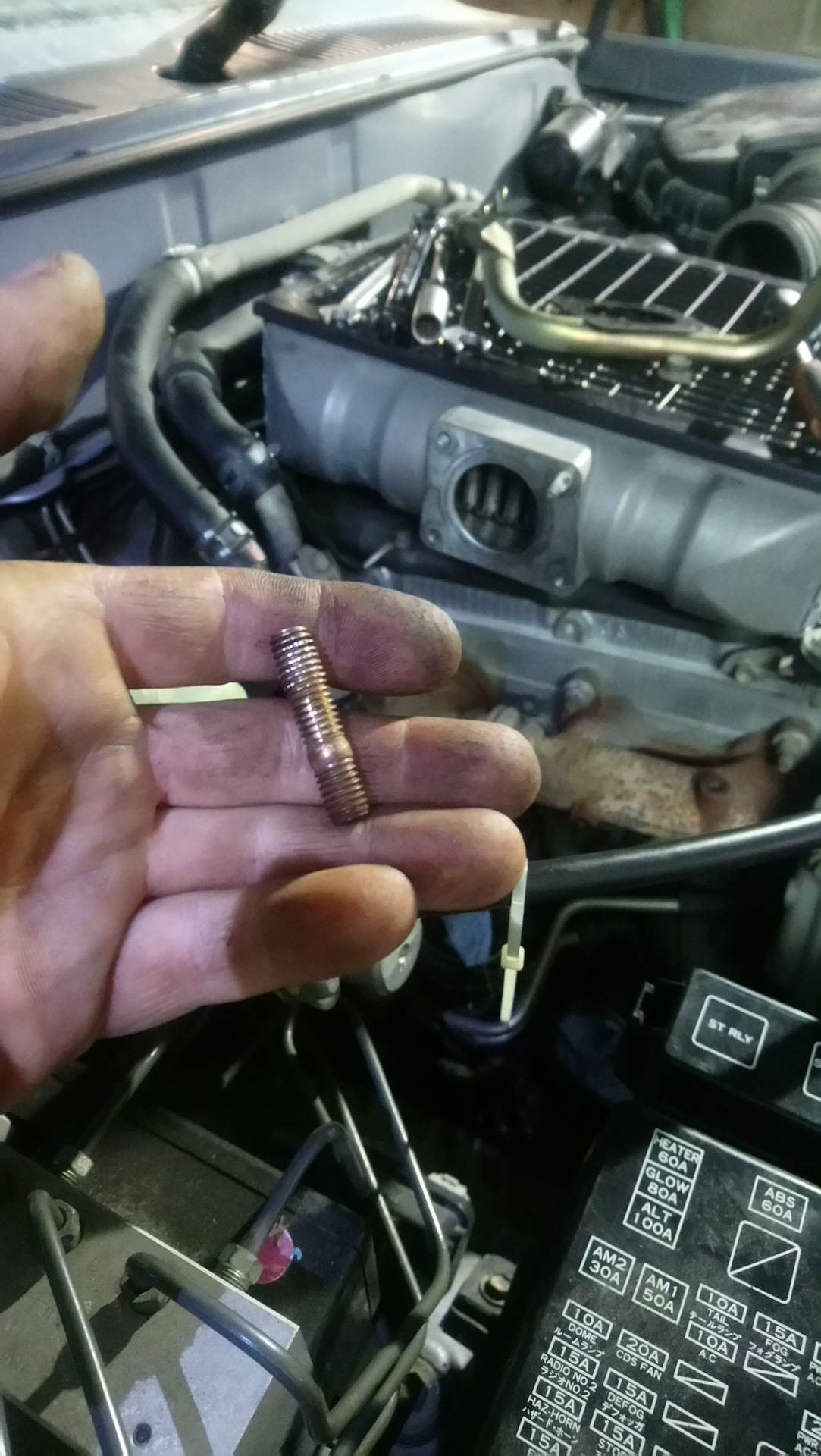 И воткнул вместо родной прокладки. Вместо шпильки ввернул подходящий болт. Всё вернул на свои места. Теперь можно не мучаться кошмарами о куче сажи, летящей во впускной коллектор.