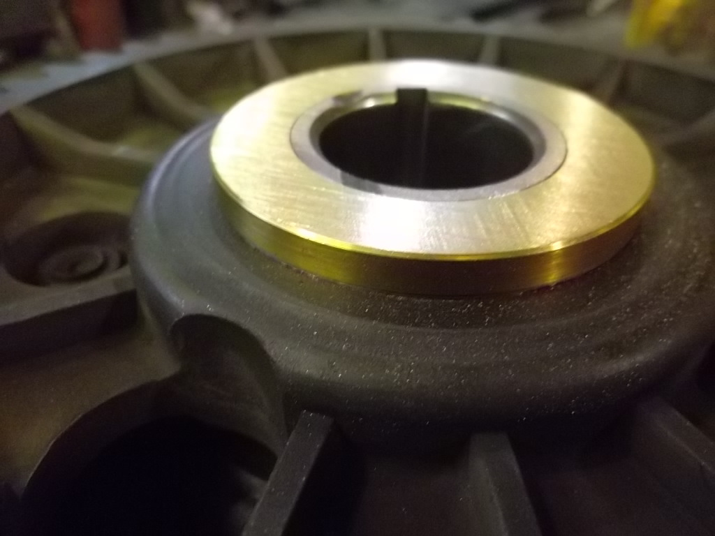 При осевом движении распредвала из-за устройства привода грм (косозубых шестерен ) при наборе оборотов или торможении двигателем постоянно меняются фазы .То в опережение при торможении то в запоздание при наборе .Да и на старых шестрёнках всего ряда в том месте порядка никогда небыло .Пластина осевой фиксации сырая, чугунное основание любой шестерни хоть текстолитовой, хоть капролоновой (белой) слабое местечко . Со смазкой шестерен я вопрос решал ещё на г-69 своём www.drive2.ru/l/7342985/ и неоднократно повторял на современных умз .Осталось навести порядок с трением и износом в районе пластины фиксации . Осмотрел снова шестеренку 4216, зажал её в станок и проточил ещё глубже чем было проточено с завода под капроновую шайбочку .Как то не удовлетворила толщина шайбы и идея подать смазку как только можно в этот узел трения не давала мне покоя ))))). Изготовил кольцо(подшипник скольжения)из той же неизвестной бронзы из которой делал фланцы распредвалов 406 -вроде как показали испытания что бронза по составу подходящая ))))). Просверлил его вдоль и поперёк -пускай купается как сыр в масле !))))Может это поможет и чугунному основанию и пластине ?)))) На одной из машинок клиент слишком стал отбрыкиваться от чёрной шестерёнки (это было ещё до внедрения бронзового подшипника) .Так мы ему поставили обычную белую (капролоновую) именно заводскую -приобретённую у оф дилера змз. Она же без отметчика ! Да и хрен с ним .Всё равно эбу возили перешивать к моему специалисту -в программе отключили дпрв -никак не хуже без него живётся .Вообще не понимаю зачем он там при таком типе грм((( .На некоторых умз 4216 его и с завода нету .