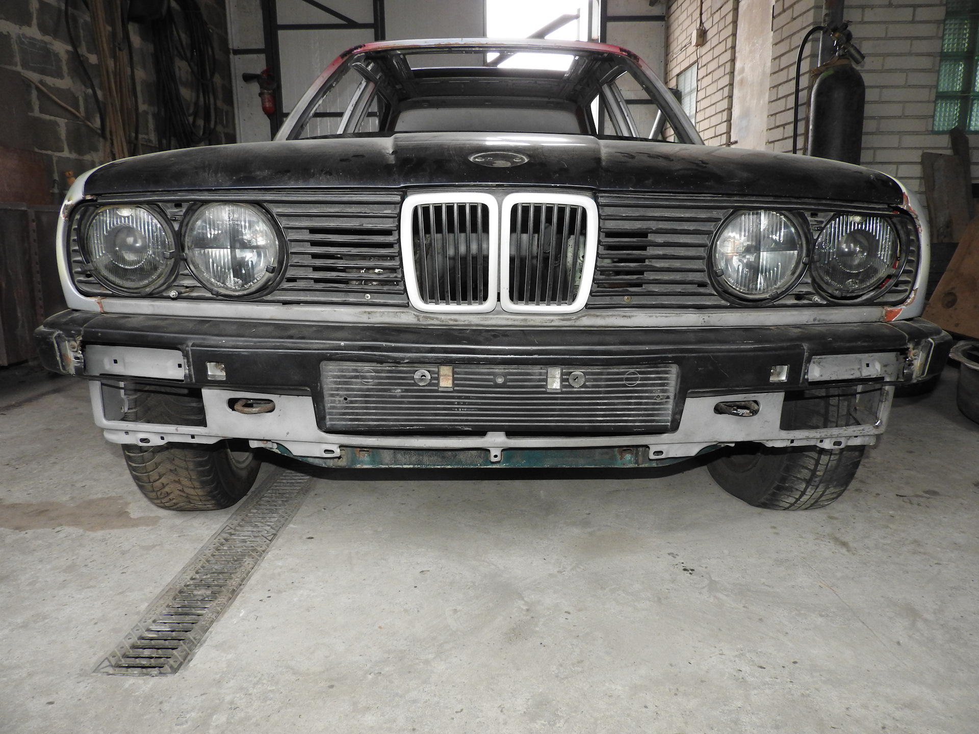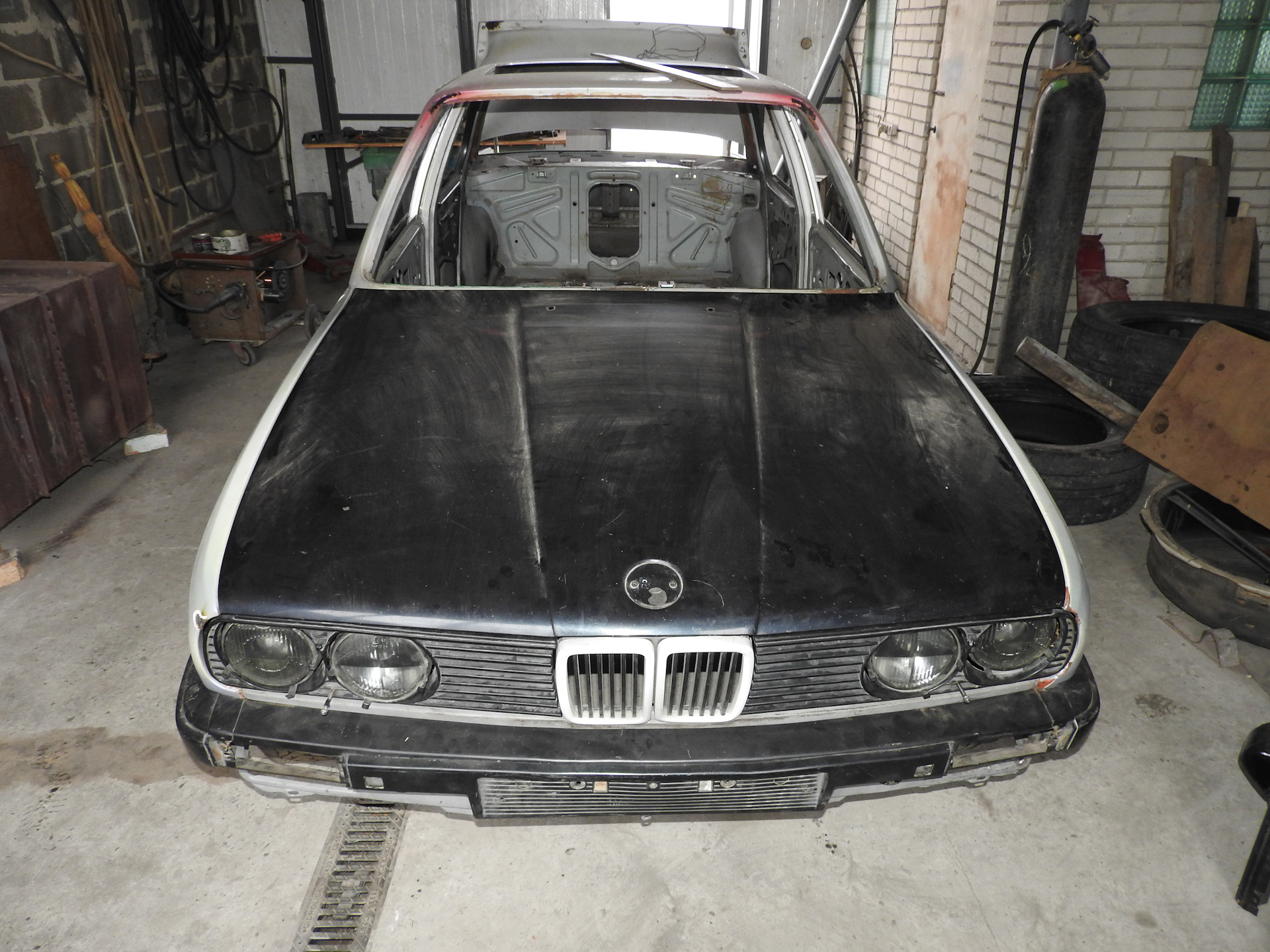 Наконец-то завершена часть сварочных работ, описанных в предыдущей записи. Спереди она снова стала похожа на машину. )